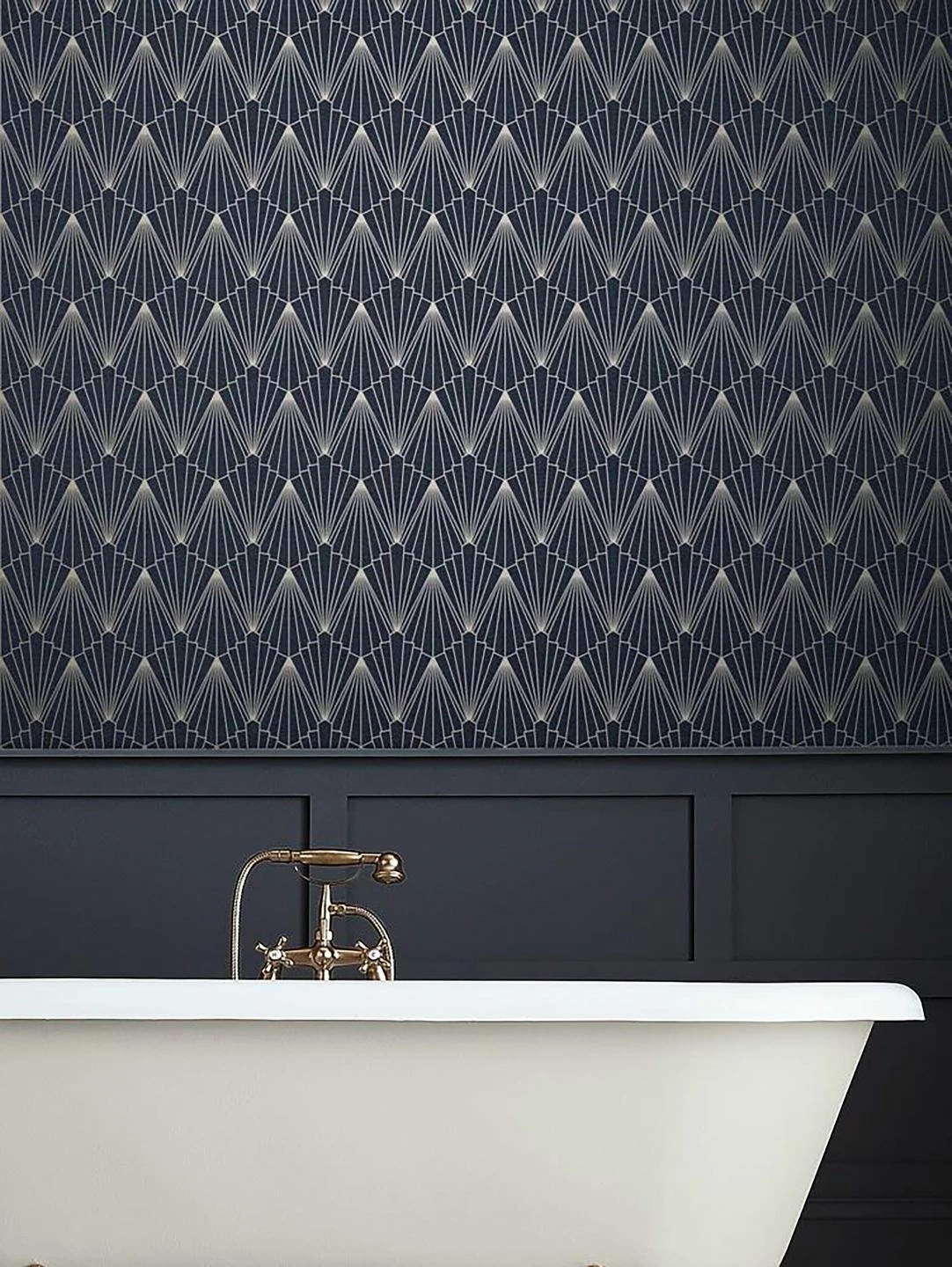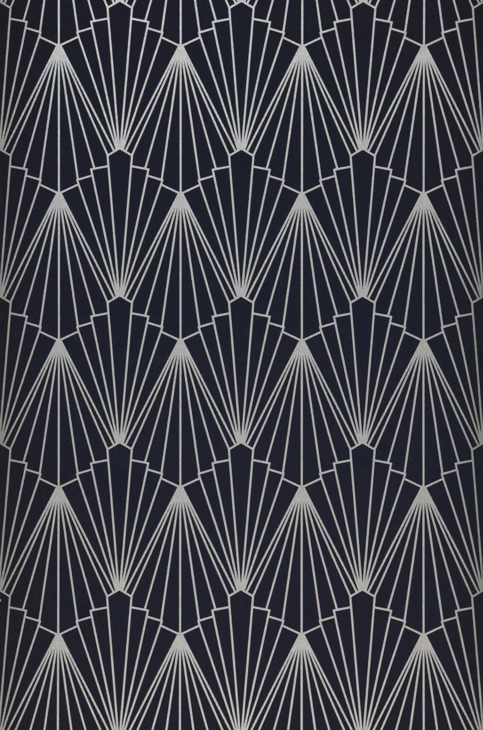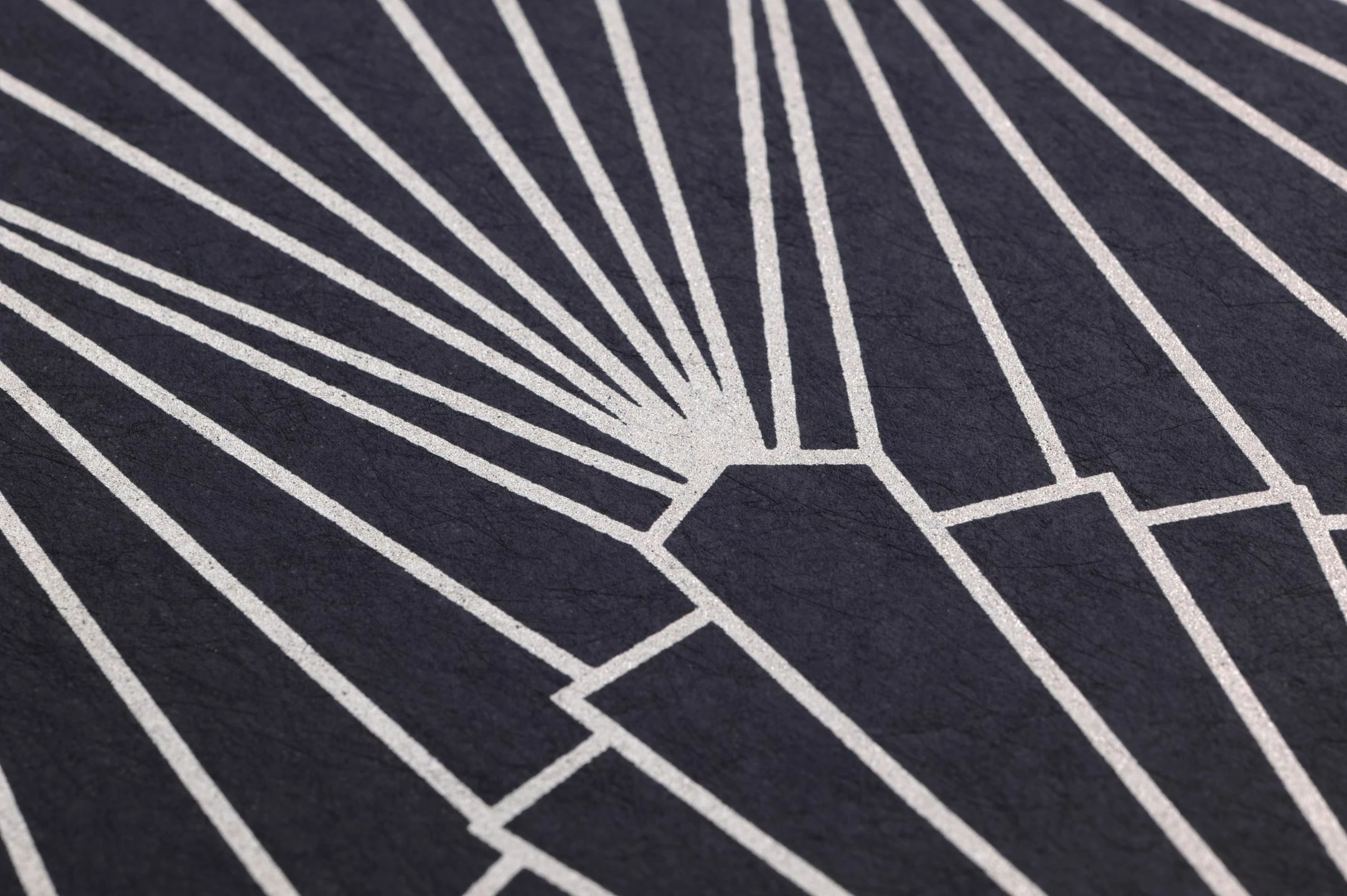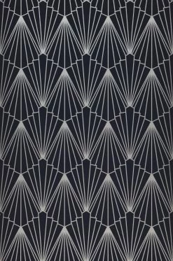 Die geradlinigen, klar definierten geometrischen Elemente, die Adansonia ausmachen, sind typisch für den Stil des Art Deco. Edel und kühl-elegant wirkt die Kombination aus dem dunkelblauen Grund und den Linien in der Farbe von Weißaluminium, die sich zu den fächerförmig angeordneten graphischen Formen zusammensetzen. Klassisch und stilsicher verschönern Sie mit der Vliestapete Ihren Wohnbereich, aber auch die Räume eines Hotels oder eines Bürotrakts.