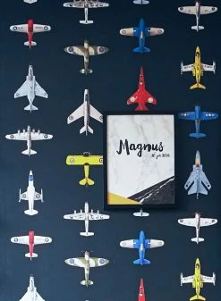 Ja wo fliegen sie denn, die bunten Flugzeuge von Studio Ditte? In Reih und Glied erobert die Riege der verschiedenen Flieger den dunkelblauen Nachthimmel. Jungs oder Mädchen können sich ein Lieblingsmodell aussuchen, Typen erraten und in Gedanken Reisen rund um den Globus unternehmen.