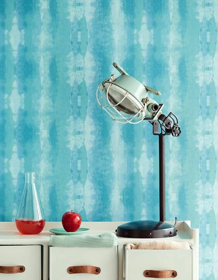 Lust auf paradiesische Erholung im Indischen Ozean? Retro Tapete Alika in herrlichen Meeresfarben wie Türkis, Ozeanblau und Wasserblau zaubert karibische Ferienstimmung in jeden Raum. Die große indische Kunst der Batik verleiht der scheuerbeständigen Vliestapete mit Vinyloberfläche ihren spirituellen Retrocharakter, der an Freiheit, Love & Peace der wilden 70er Jahre erinnert. Auch haptisch hält diese wunderbare Design Tapete eine Überraschung parat: Die Oberfläche zeigt ein feines textilähnliches Muster, das zum Anfassen einlädt.