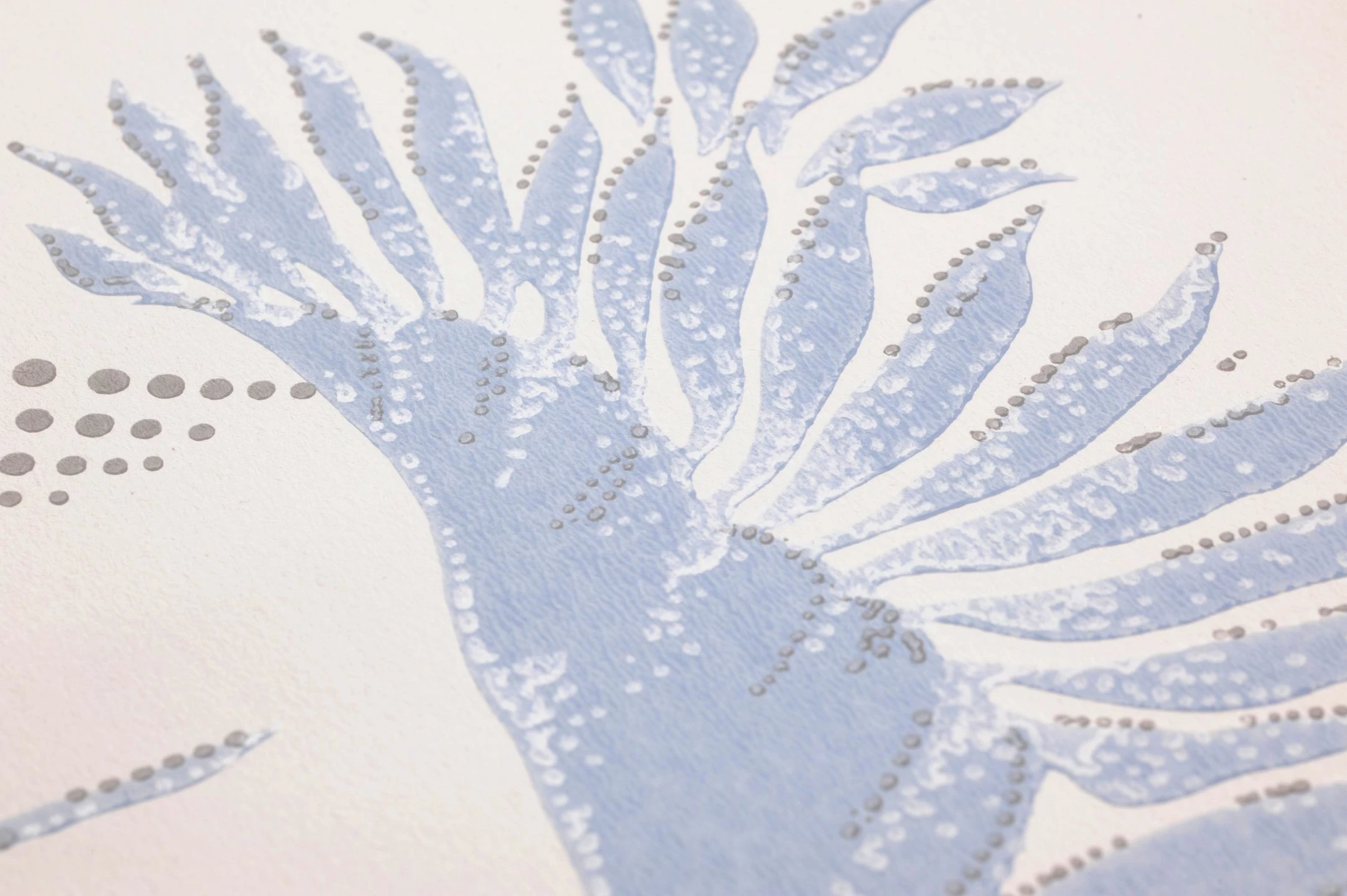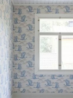 Kraniche bringen Glück, so heißt es in der japanischen Mythologie. Und so liebevoll gezeichnete Kraniche wie auf dieser Papiertapete tun das ganz bestimmt! Die eleganten Vögel fliegen zwischen Wolken, die auf dem cremeweißen Grund nur durch dunkelgraue Punkte angedeutet werden. Der handgemachte Charakter der Tapete entsteht durch das traditionelle Leimdruckverfahren, mit dem sie hergestellt wurde.