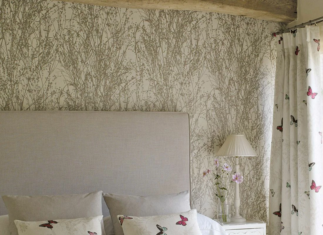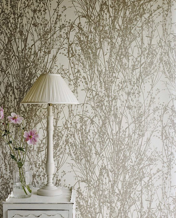 Wie inmitten einer blühenden Wiese im Sommer können Sie sich mit dieser außergewöhnlichen Tapete fühlen. Die Silhouetten von hoch gewachsenen Gräsern mit ihren Blütenständen sind in Graubeige auf den cremeweißen, ganz leicht gemusterten Grund gezeichnet. Ein harmonisches Gesamtbild ergibt sich mit sand- oder beigefarbenen Möbeln oder in Verbindung mit Ihrer Einrichtung im Landhaus-Stil oder im skandinavischen Stil.