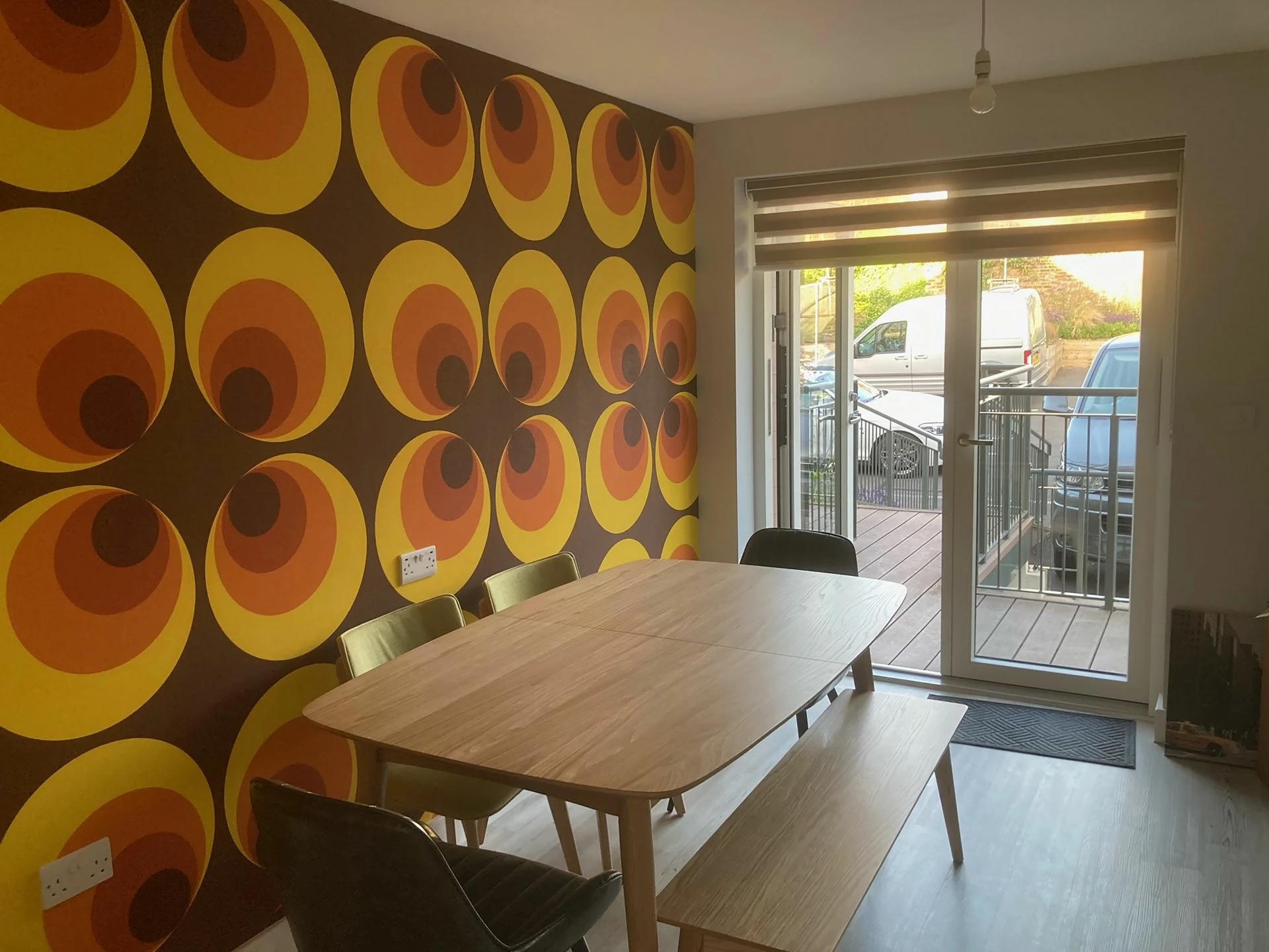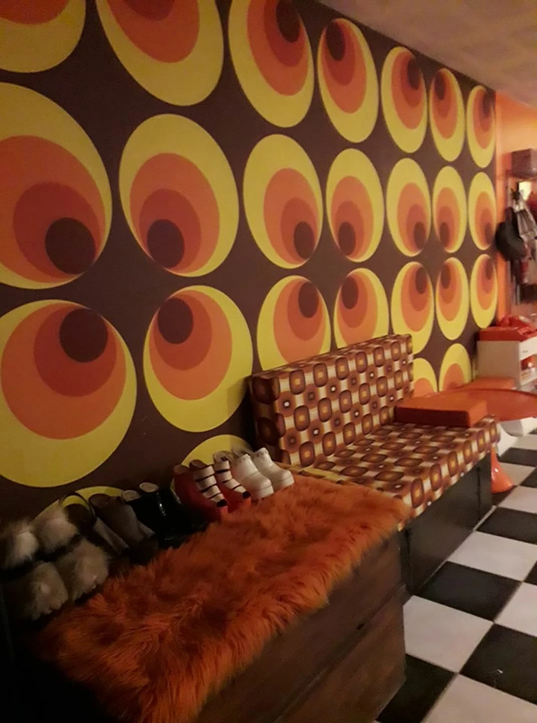 Die Atmosphäre der 70er Jahre erwecken Sie mit dieser Tapete gekonnt zum Leben. Denn hier gehen Muster und Farbwahl Hand in Hand: Die einander umschließenden Kreise, charakteristisch für das Design der 70er, sind in den typischen Gelb- und Orangetönen auf braunem Grund gefärbt. Der Clou des Musters: Aus der Entfernung betrachtet, lässt die Anordnung der Kreise zueinander Formen wie vierblättrige Kleeblätter entstehen.