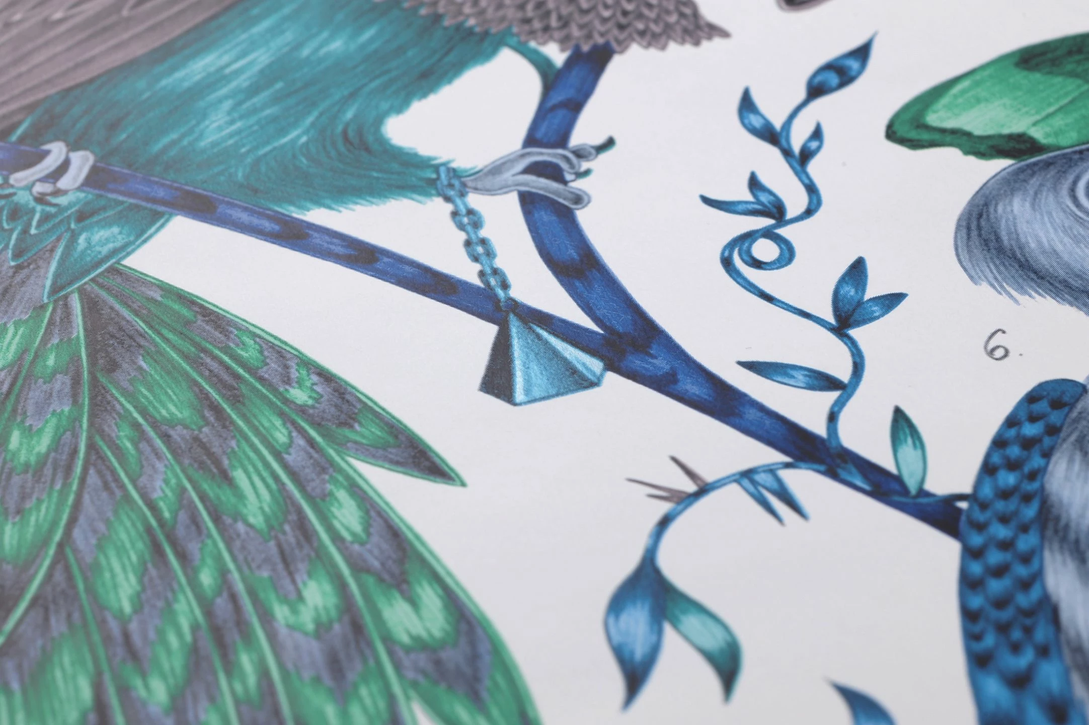 Tropische Muster beflügeln die Sinne und wecken Reiselust. Romantische Exotik strahlt Designtapete Audubon in karibischen Farben wie Capriblau, Grauviolett, Grün, Pastelltürkis Schimmer, Türkisblau aus. Schon eine Akzentwand genügt, um die erholsame Wirkung der aufwendig gestalteten Mustertapete zu spüren. (Volturi)