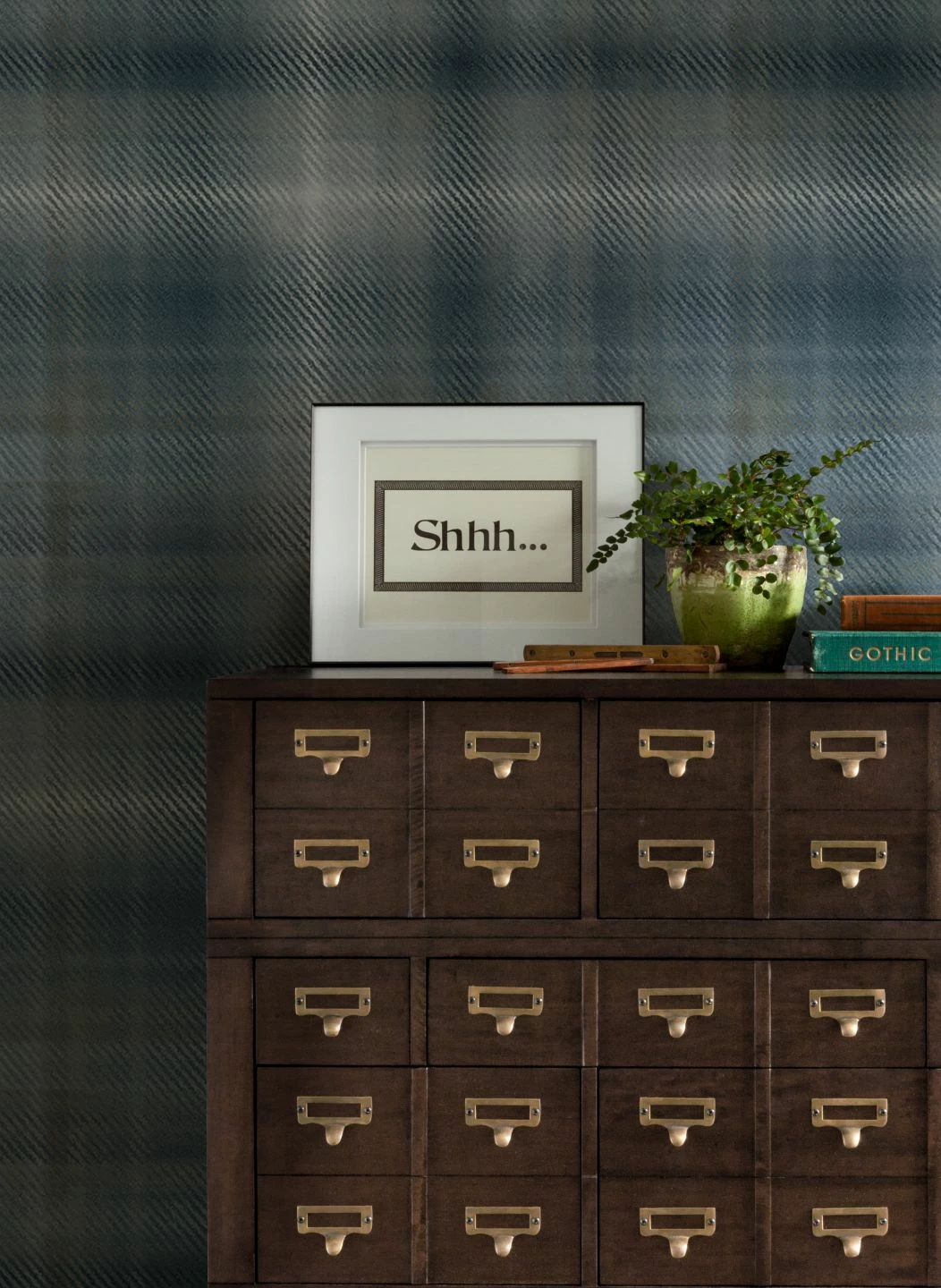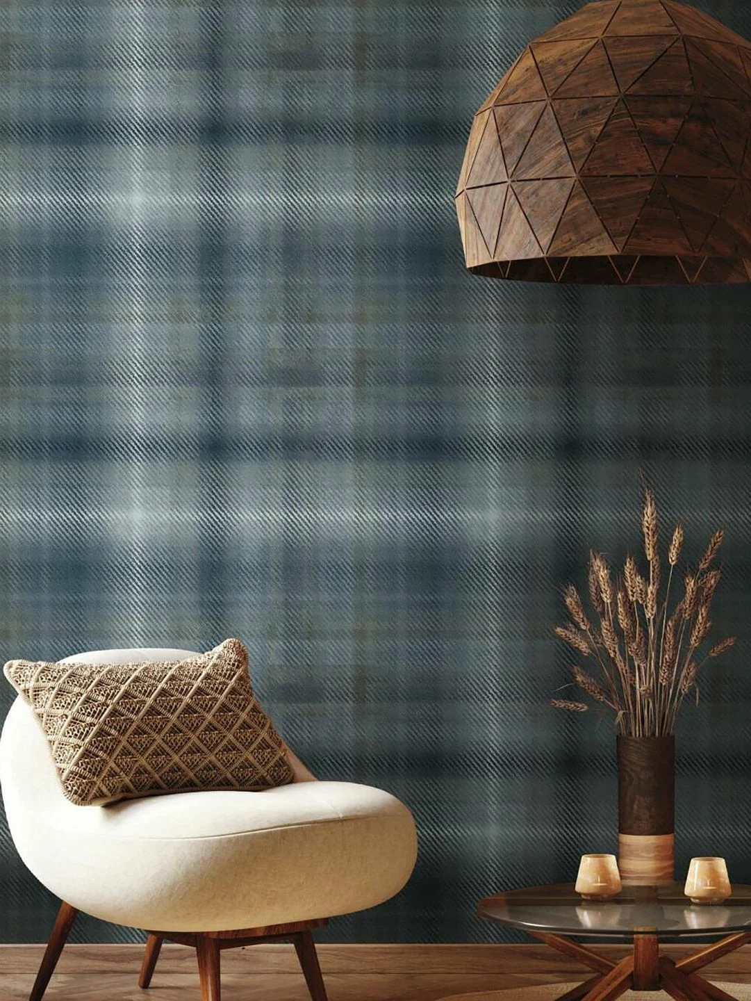 Kühle, ruhige Grau- und Blautöne bilden ein Tartan-Muster aus Streifen und Karos. Die typische, an gewebte Textilien erinnernde Struktur der feinen Farbstreifen beschwört die raue Landschaft der schottischen Highlands, das Aroma rauchigen Whiskys und gemütliche Abende am offenen Kamin herauf. Auf eine Tapete gebannt, strahlt das Muster Bodenständigkeit, Gemütlichkeit und die Synthese von Tradition und Moderne aus und macht Ihren Raum unverwechselbar.