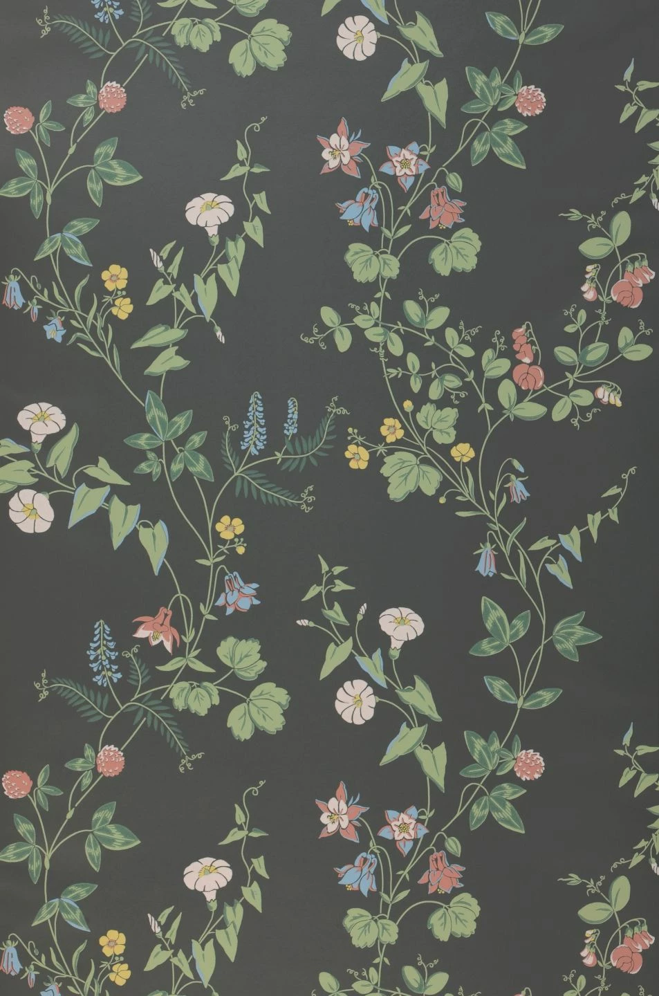 Sommerliche Leichtigkeit kontrastiert mit ruhiger Festigkeit: Die Vielfalt der Sommerblumen in zartem Hellgelb, Hellgrün, Pastellblau und Rosatönen bildet ein luftiges, farbenfrohes Gegengewicht zum Stabilität ausstrahlenden basaltgrauen Untergrund der Vliestapete. Je nachdem, ob Sie mit dunklen Möbeln oder einer der hellen Musterfarben kombinieren, unterstreichen Sie entweder die sommerliche Lebensfreude oder die Solidität, die die Tapete verströmt.