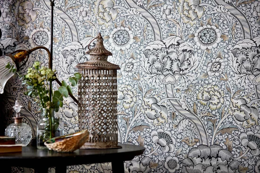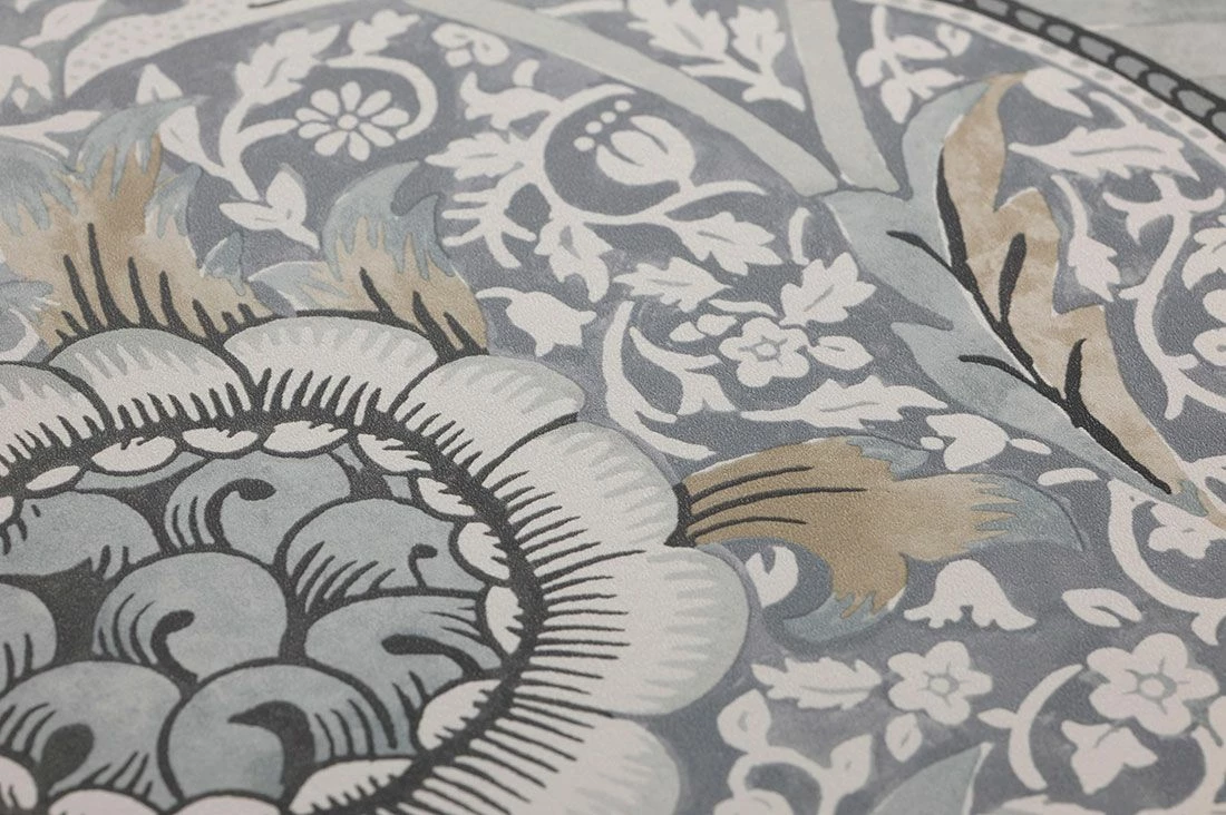 Stilisierte Blumen und Rankenornamente in Grau-, Braun- und Weißtönen kennzeichnen die kunstvollen Dekorationsmuster der Renaissance. Mit Designer Tapete Benedetta lebt diese Kulturepoche des Mittelalters eindrucksvoll wieder auf. Verwandeln Sie Räume in stilvolle Burgzimmer, die gerne mit antikem, wertvollem Mobiliar ausgestattet werden.