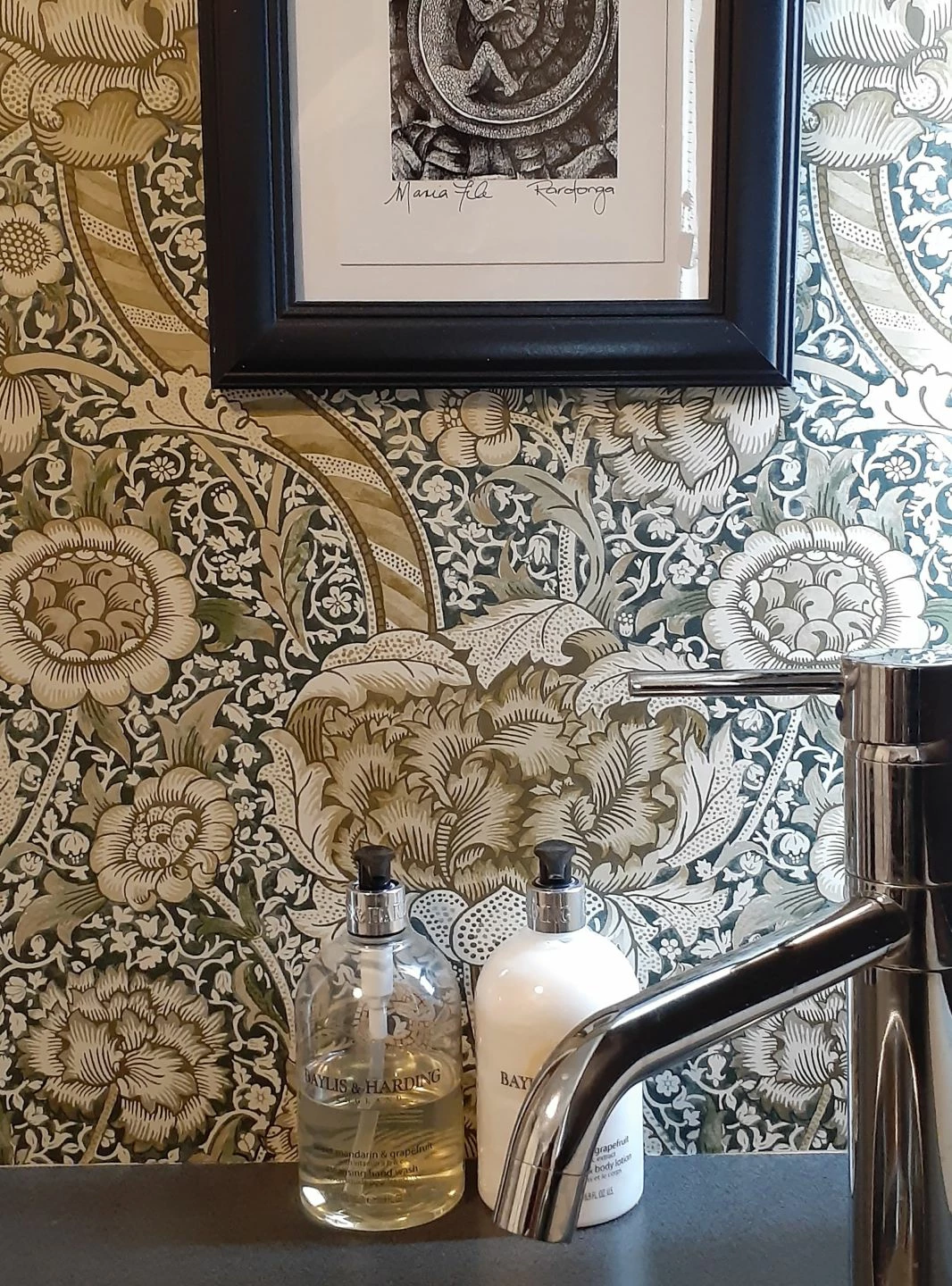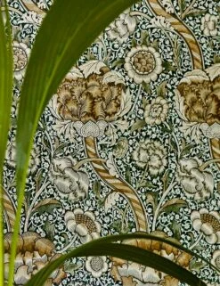 Dunkelgrün, Grünbraun, Hellelfenbein, Khaki, Olivgrün – Bevorzugte Farben der hochwertigen Gobelins und Wandteppiche des Spätmittelalters zieren die zauberhafte Design Tapete mit floralem Renaissance-Muster. Erfinden Sie Ruheräume neu, in dem Sie Stilepochen mixen, z.B. die üppige Renaissance und den designorientieren Mid-Century-Stil.