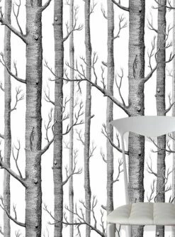 In diesem Wald stehen Sie goldrichtig, denn es ist nicht nur ein gezeichneter Baumwald, sondern ein grafisches Kunstwerk, das sich aus Punktlinien und Strichen zusammensetzt und dem Raum mythische Tiefe verleiht. Schwarz und Weiß lassen die Konzentration auf das Wesentliche zu – in diesem Kontext die Ruhe und Würde, die der Szenerie innewohnt.