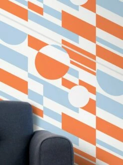 Ein rasantes Tempo legt Grafiktapete Calimero vor und beflügelt die eigene Energie. Diese moderne Kunst in Orange, Pastellblau, Silber Schimmer und Weiß ziert Räume, die keine Langeweile vertragen. Ein bisschen Provokation hingegen schon. Auch im Jugendzimmer ist die glatte Papiertapete als Understatement gefragt.