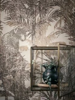 Man muss schon etwas genauer hinsehen, um den großen Leoparden in dieser exotischen Palmenszenerie zu entdecken. Dieser reizvolle Effekt in Verbindung mit dem textilartigen hochwertigen Strukturdesign macht Vinyltapete Casaba zu einem Überraschungskünstler, der auch in stark beanspruchten Räumen zum Einsatz kommen kann.