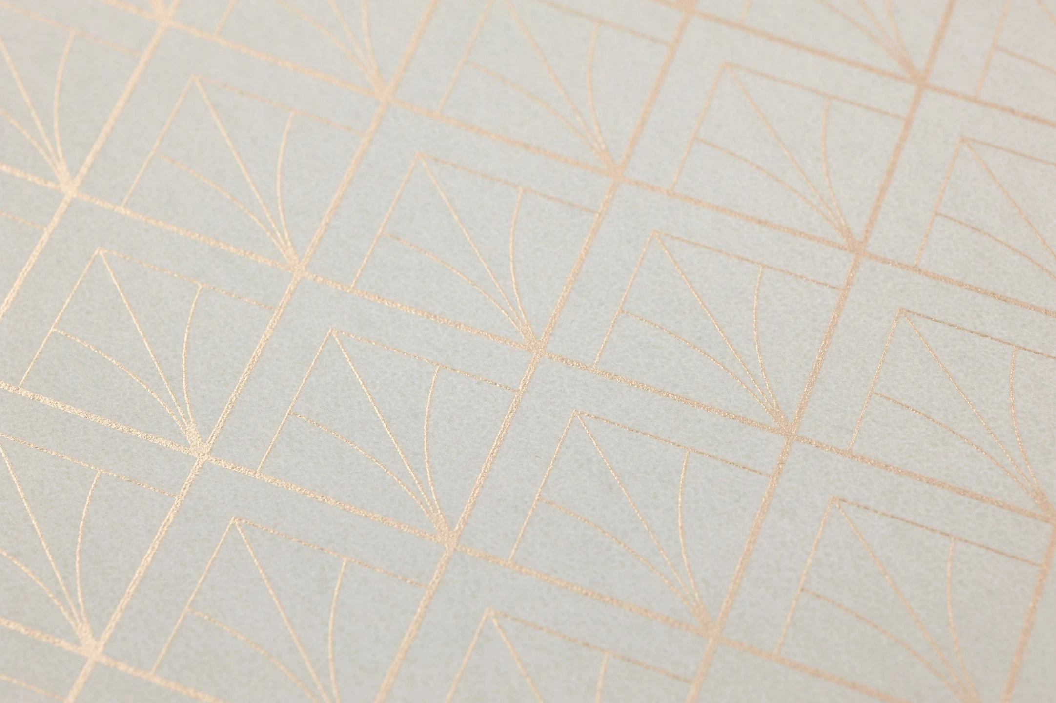 Elegante glatte Formen, perfekte Symmetrie, metallische Farben – Die Art Deco Strömung hat bis heute nichts von ihrem Reiz verloren. In Design Tapete Catriona zeigt sich das geometrische Rautenmuster in Gold, das durch Licht glamourös aktiviert wird. Zusammen mit dem eierschalenfarbenen Grund ergibt sich eine subtile Eleganz für stilvolle Räume.