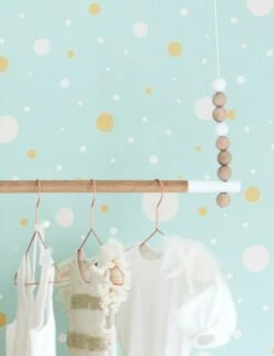 Auf dem hellgrünen Fond regnet es pastelliges Konfetti in Blassbeige, Cremeweiss, Ockergelb. Diese Farbvariante der Designer Tapete aus dem Hause Majvillan lässt Kreativität, Tatendrang und Freude sprudeln und bleibt dennoch auf ihre Art romantisch verträumt.