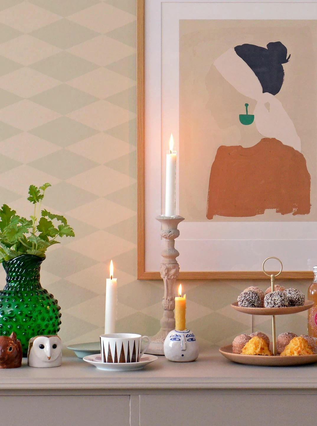 Gleichmäßige Rauten im Querformat bilden ein ruhiges, regelmäßiges Muster auf dieser Vliestapete der schwedischen Designerfirma Majvillan. Beruhigend ist das Zusammenspiel der Farbtöne Blassgrün und Creme, deren geringer Kontrast sie harmonisch miteinander wirken lässt. Der dezente, vielseitig verwendbare Wandschmuck passt sich jedem Raum an – egal ob Ihrem Wohnzimmer, Ihrer Küche oder dem Kinderzimmer.