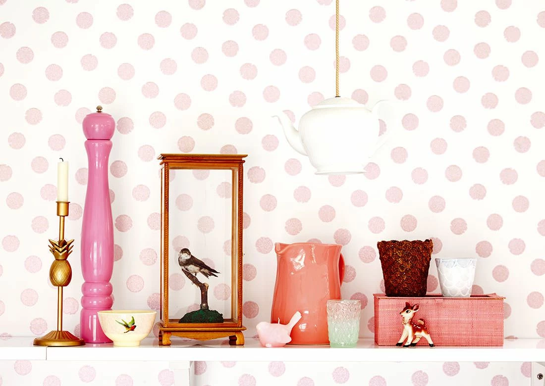 Wer Rosatöne und Glitzer mag, wird diese Tapete lieben! Scheinbar zufällig verteilte Tupfen in zartem, glitzerndem Hellrosa sind wie ein feines Relief fühlbar und beleben die Tapete nicht nur optisch, sondern auch haptisch. Sie bilden eine einfühlsame Kulisse für ein freundliches Mädchenzimmer, ein romantisches Schlafzimmer oder einfach für Ihren Lieblingsraum und verbreiten gute Laune und Geborgenheit.