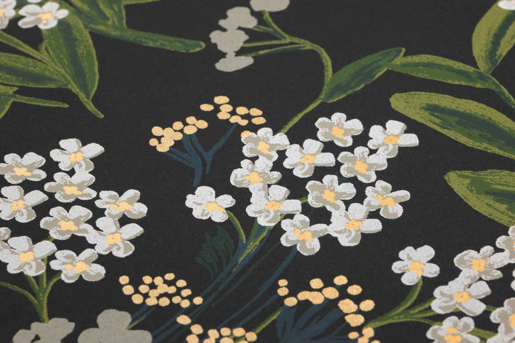 Auf dem schwarzgrauen Grund entwickeln die kleinen, im typischen Stil von Rifle Paper wie handgemalt wirkenden Blüten eine ungeheure Leuchtkraft. Gleichzeitig gibt der dunkle Untergrund dem Design eine edle Note, noch unterstrichen von den feinen Highlights in schimmerndem Perlgold. Mit dem zeitlosen Design von Cornflower stellen Sie dem skandinavischen Stil eine starke Ergänzung an die Seite – im Ess- oder Schlafzimmer, im Flur oder in einem Gastraum, ganz nach Ihrem Geschmack.