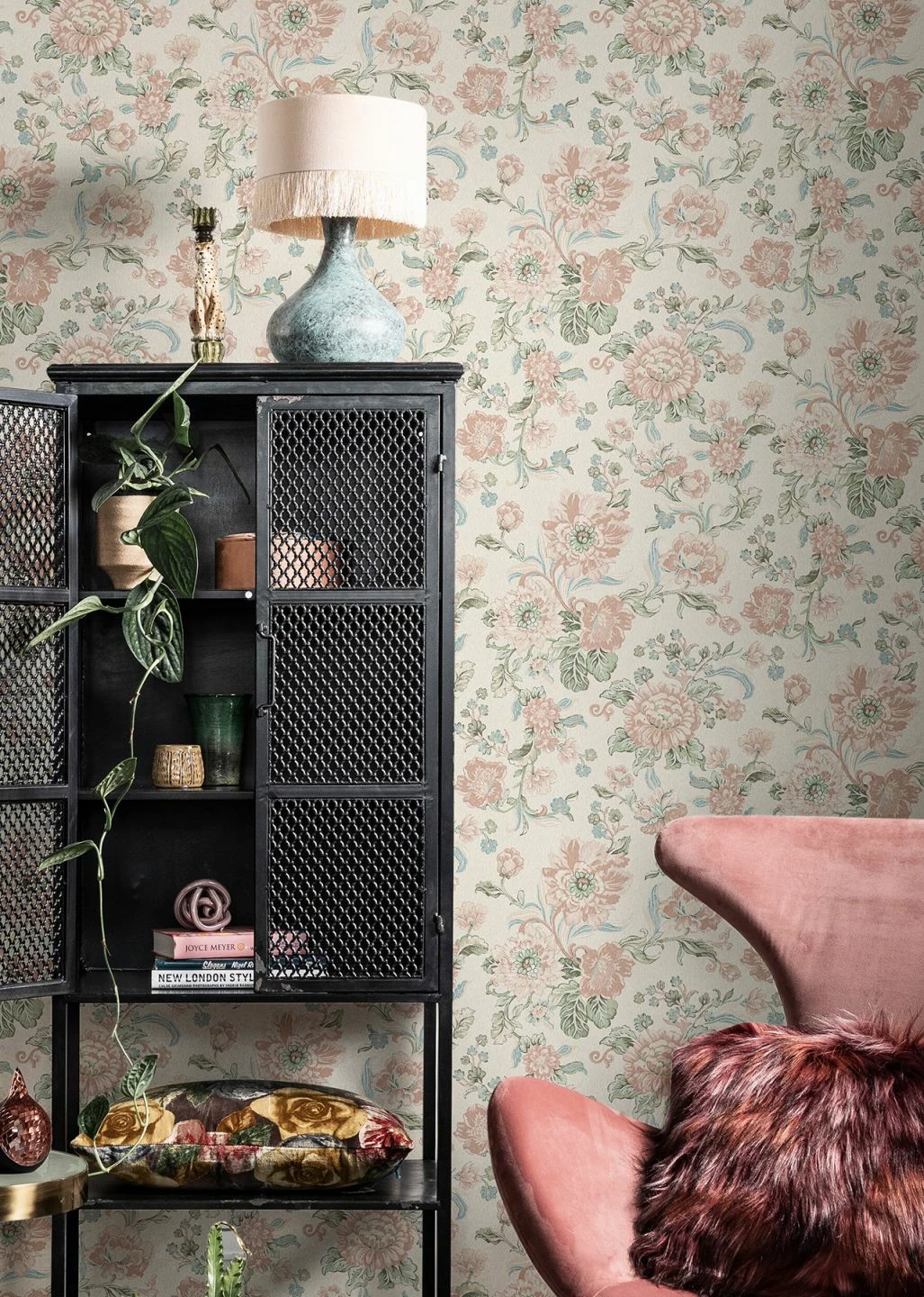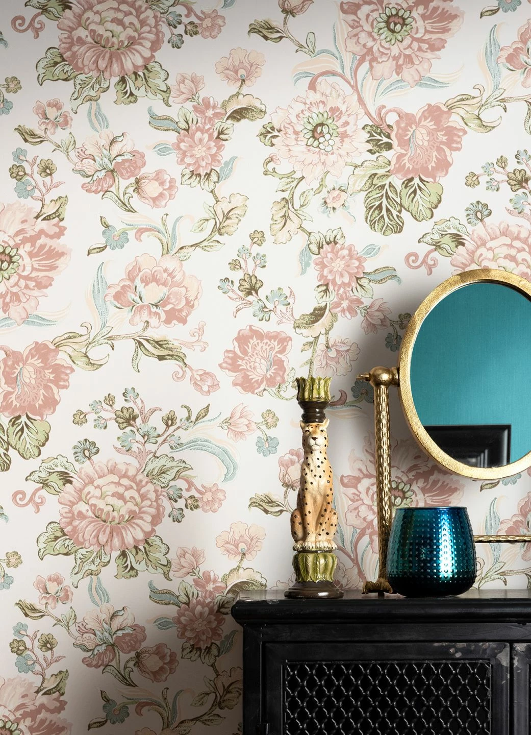 Zarte Pastelltöne und kunstvoll gestaltete Blüten, Blätter und Ranken machen den Charme dieser Tapete aus. Die hellen Creme-, Grün-, Türkis- und Rosatöne bilden mit dem cremeweißen Untergrund eine harmonische Einheit. Durch das Vinyl der Oberfläche lässt sich die Vliestapete leicht reinigen und ist sogar für das Badezimmer perfekt geeignet.