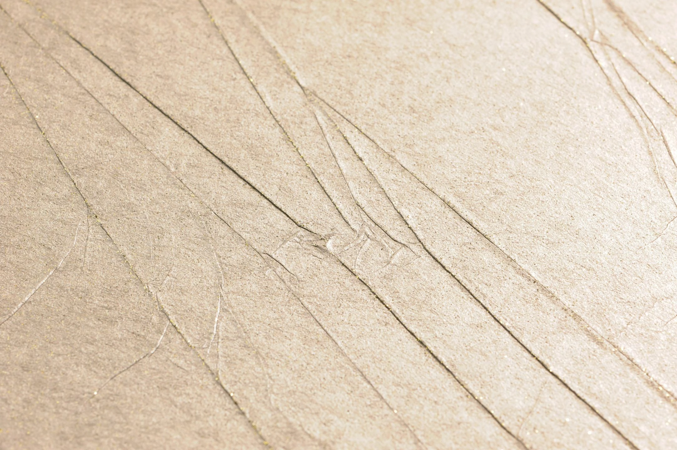 Gleichzeitig edel und natürlich wirkt der helle Elfenbeinton, mit dem die matte Oberfläche der Crush-Tapete eingefärbt ist. Wie die weit verzweigten Arme eines Flussdeltas ziehen sich die attraktiven Falten durch das Material. Sie sind als feines Relief spürbar und werden durch Spuren von goldenen Glitter betont und hervorgehoben. Das Design dieser exklusiven Crush-Tapete macht Ihren Raum schick und eine Spur unkonventionell.