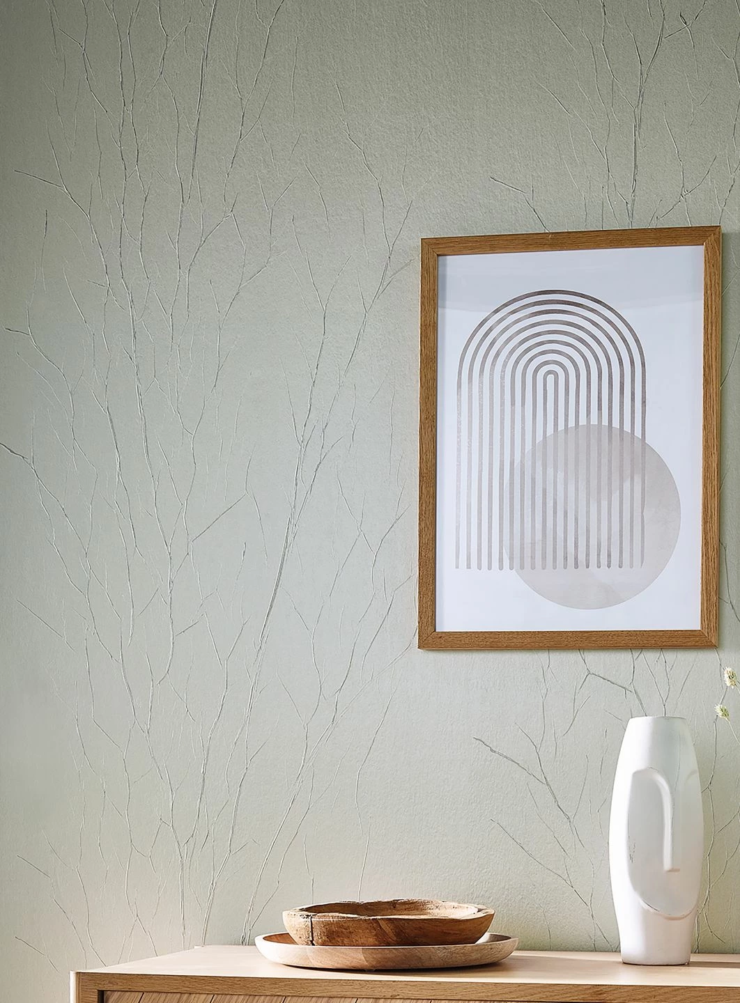 Die Falten auf dieser grauweiß schimmernden Crush-Tapete verästeln sich wie die Zweige eines Baumes, der schemenhaft aus einer nebligen Winterlandschaft auftaucht. Die kunstvoll angeordneten, reliefartig fühlbaren Falten geben zum visuellen Eindruck noch die raffinierte Haptik hinzu. Es entsteht eine geheimnisvoll-elegante, die Konturen Ihrer Wand dezent auflösende Kulisse, die an Formen aus der Natur erinnert.