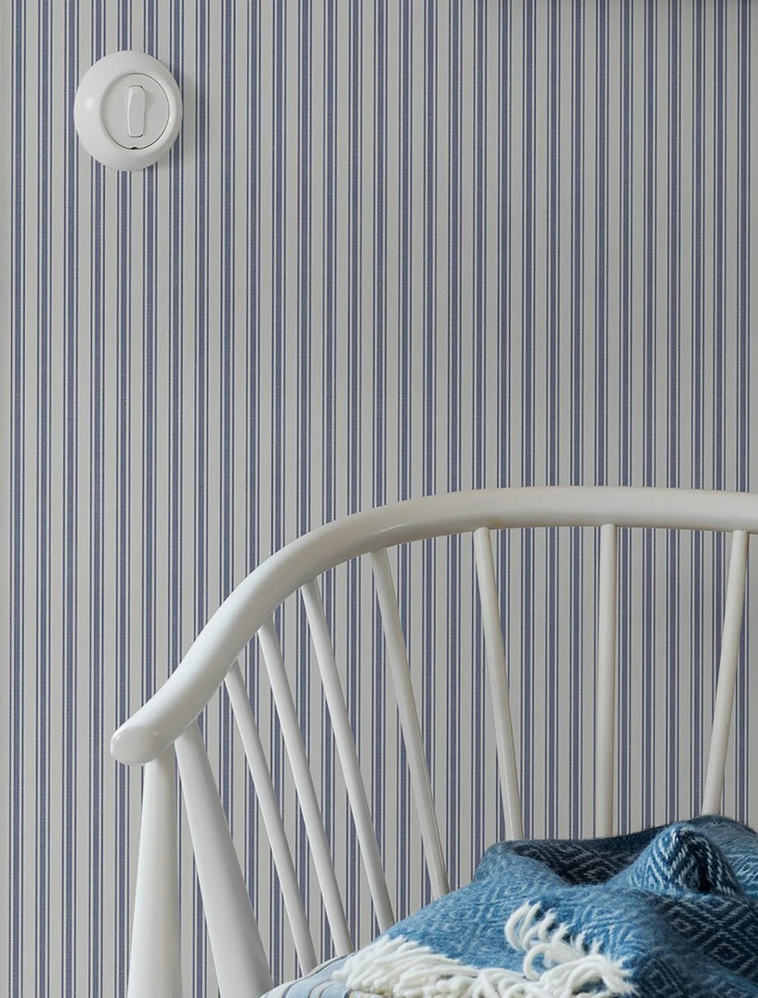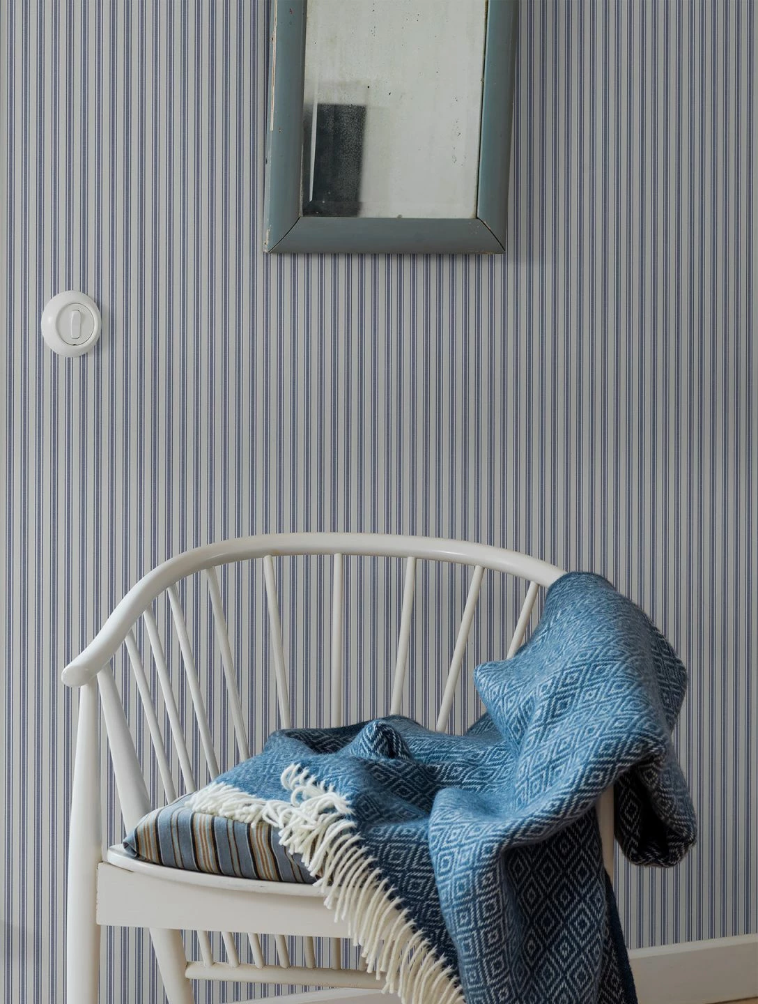 Ein Streifenmuster mit Weitblick, das sich verschiedene Perspektiven zu Eigen macht, setzt das I-Tüpfelchen in romantisch angehauchten Räumen. Von nah und fern betrachtet, ergibt sich eine jeweils neue Wahrnehmung, die sich auch auf die Farbnuancen bezieht. Die pflegeleichte Vliestapete in Graublau und Weiß fühlt sich besonders in maritim-rustikalen oder edlen Looks wohl.