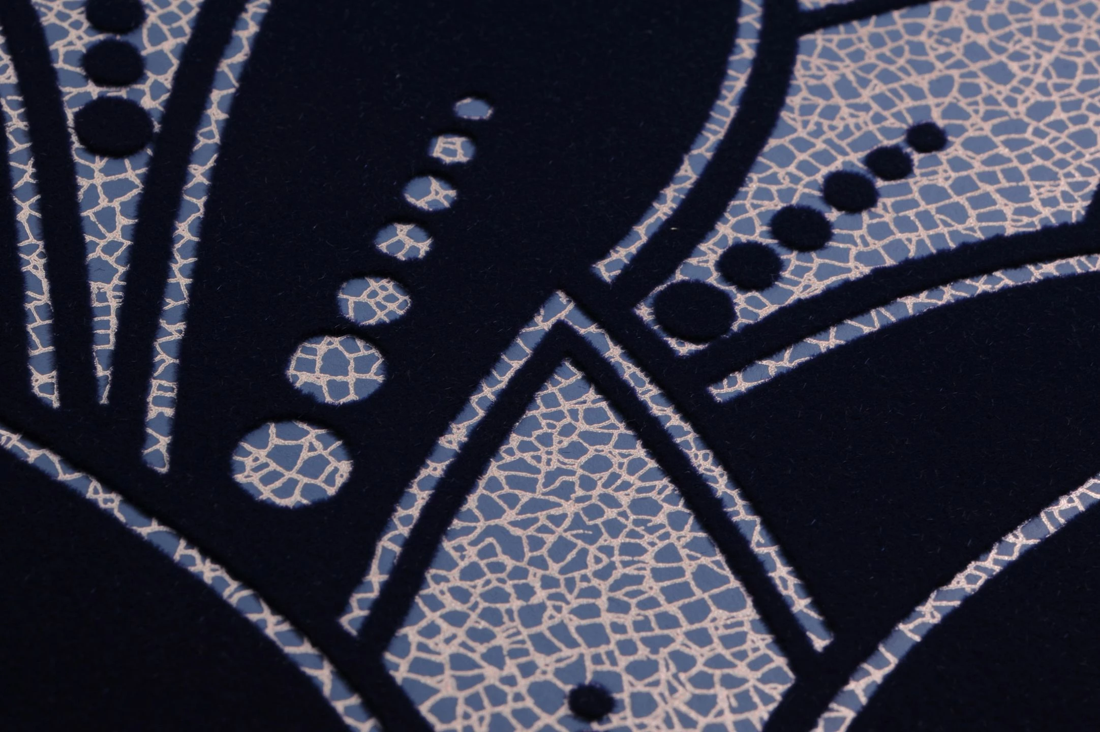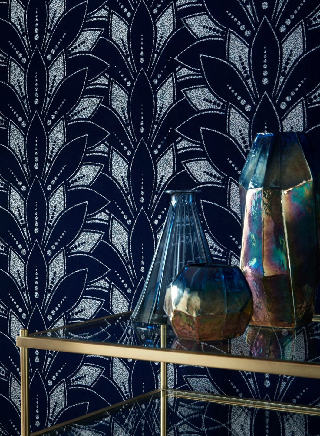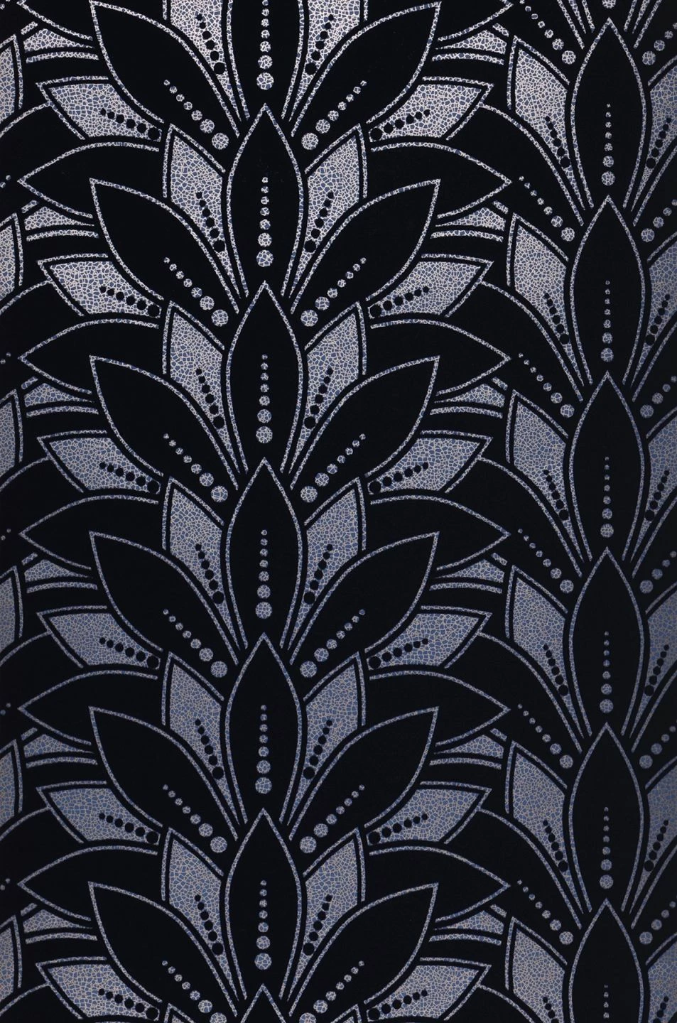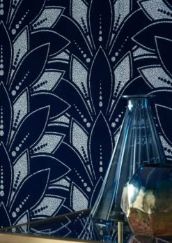 Edel und märchenhaft ist die Anmutung der stilisierten Blüten in Blautönen und Silber. Nachtblauer Flock wird mit schimmernden, azurblau und silbern marmorierten Flächen kombiniert und lässt die Art-Deco-Ornamente wie ein plastisches Relief hervortreten. Ein Traum in Blau, der zum Entspannen einlädt! Die Vliestapete ist noch in weiteren Farb- und Materialkombinationen zu haben.