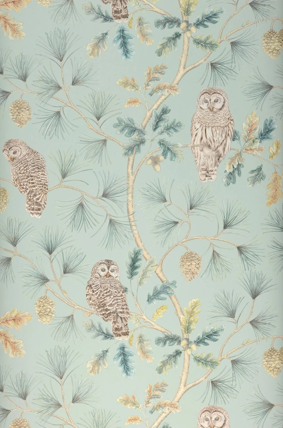 Wunderschön gezeichnet sind die Eulen, die die Vliestapete „Florentine“ bevölkern. Das Muster ihres weichen Gefieders und die ausdrucksvollen Augen kommen besonders schön zur Geltung. Auf dem blassmintgrünen Untergrund ist der natürliche Lebensraum der nachtaktiven Vögel angedeutet: Zweige mit Eichenlaub und Kiefernnadeln, dazwischen Eicheln und Kiefernzapfen, versetzen Sie in die Welt des Waldes.