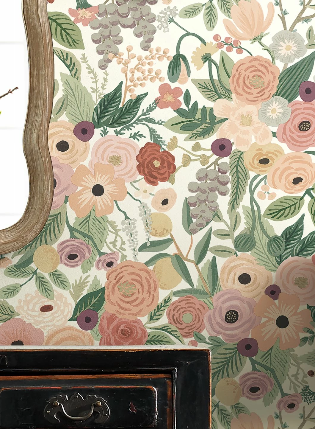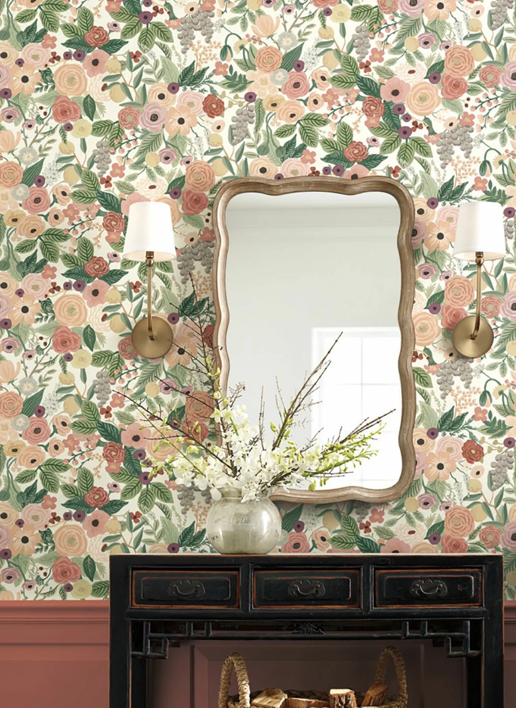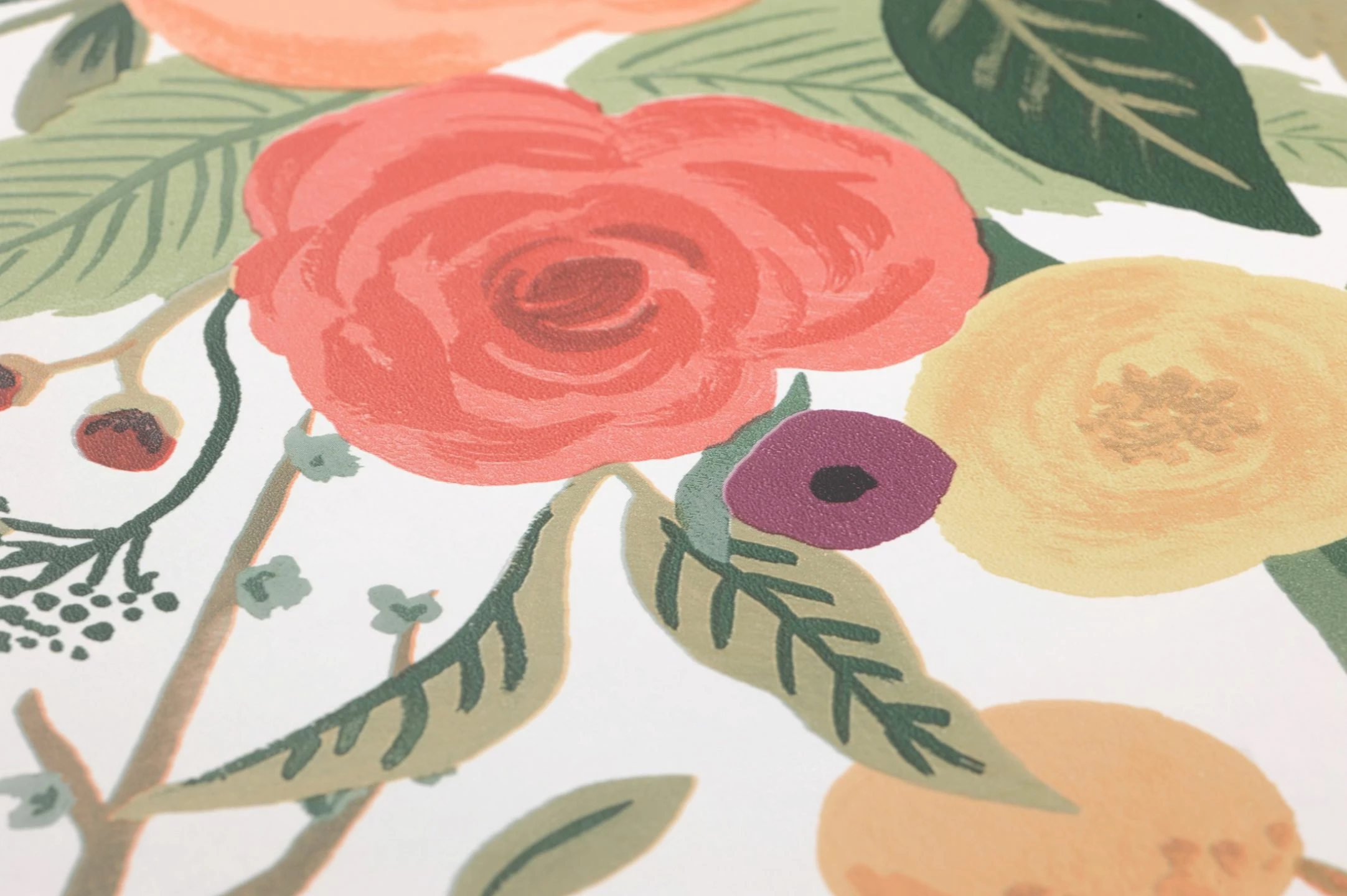 Ein blühender Garten voller Blumen und Blätter in Rosa-, Lachs- und Bordeauxtönen. Die miteinander harmonierenden Farben bringen einen Hauch von Frühlingssonne mit und sorgen für gute Laune. Kombinieren Sie die Papiertapete ganz nach Ihren Wünschen mit Möbeln aus dunklem Holz, im Landhaus-Stil oder im freundlichen, schlichten skandinavischen Stil zu Ihrem ganz persönlichen Wohlfühlzimmer!