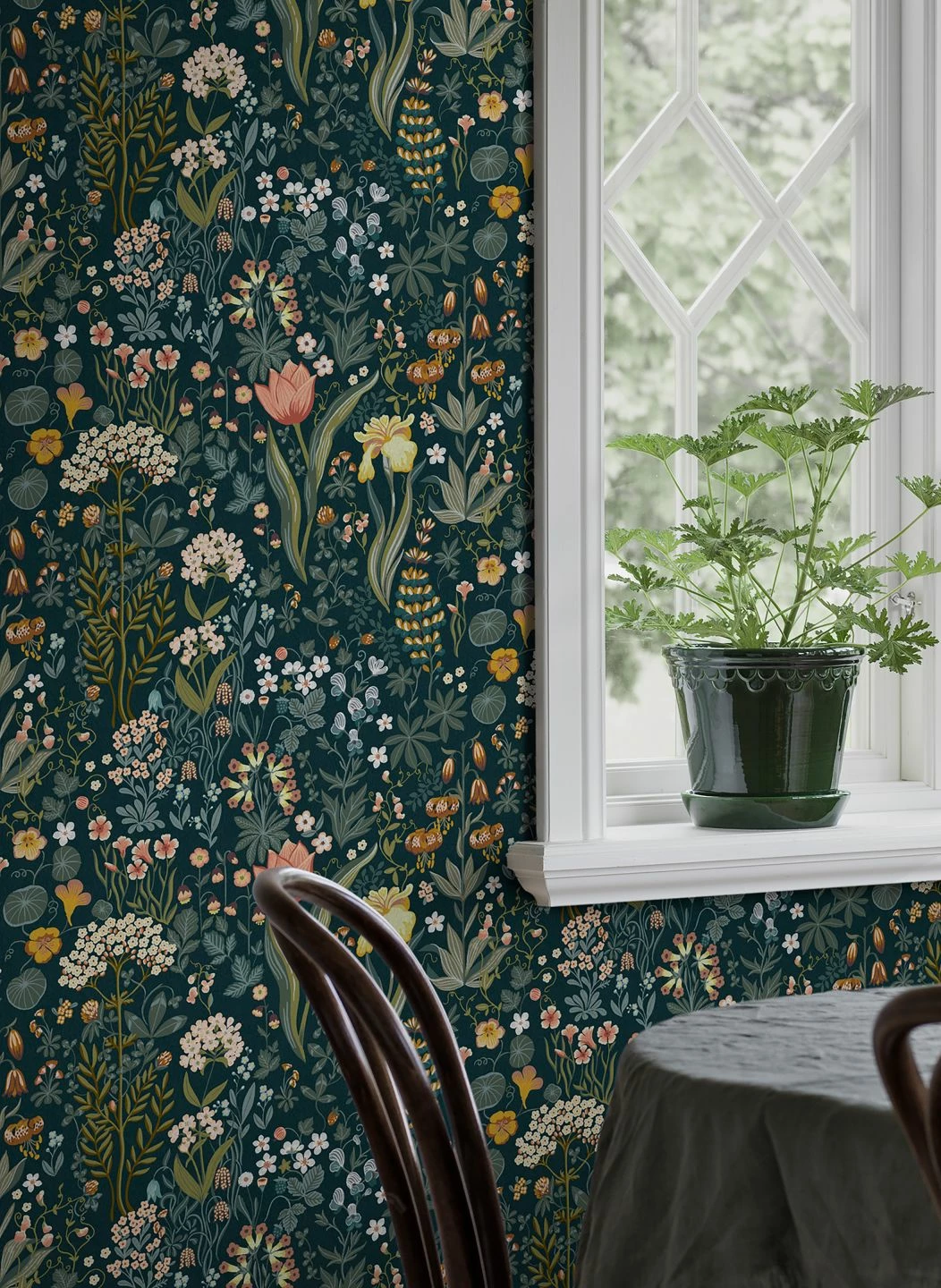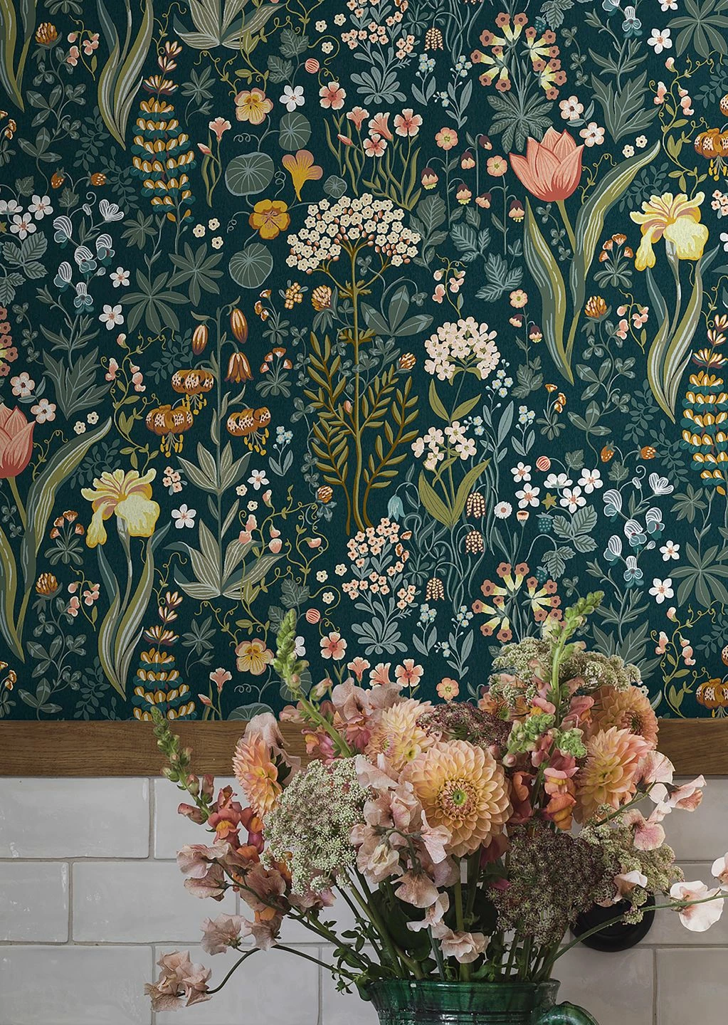 Vor dem tiefdunklen Ozeanblau des Hintergrunds leuchten die Orangebraun-, Gelb- und Rosatöne der Blüten besonders schön, während sich die Grüntöne und das Mintgrau der Blätter mit dem Grund zu einer Einheit verbinden. Ihr Wohnzimmer, Esszimmer oder Ihre Küche werden mit dem floralen Design der Vliestapete Isabelle zu einem Wohlfühlort. Durch die Auswahl passender Farben für Einrichtung und Deko-Elemente schaffen Sie Ihr individuelles Gesamt-Design.