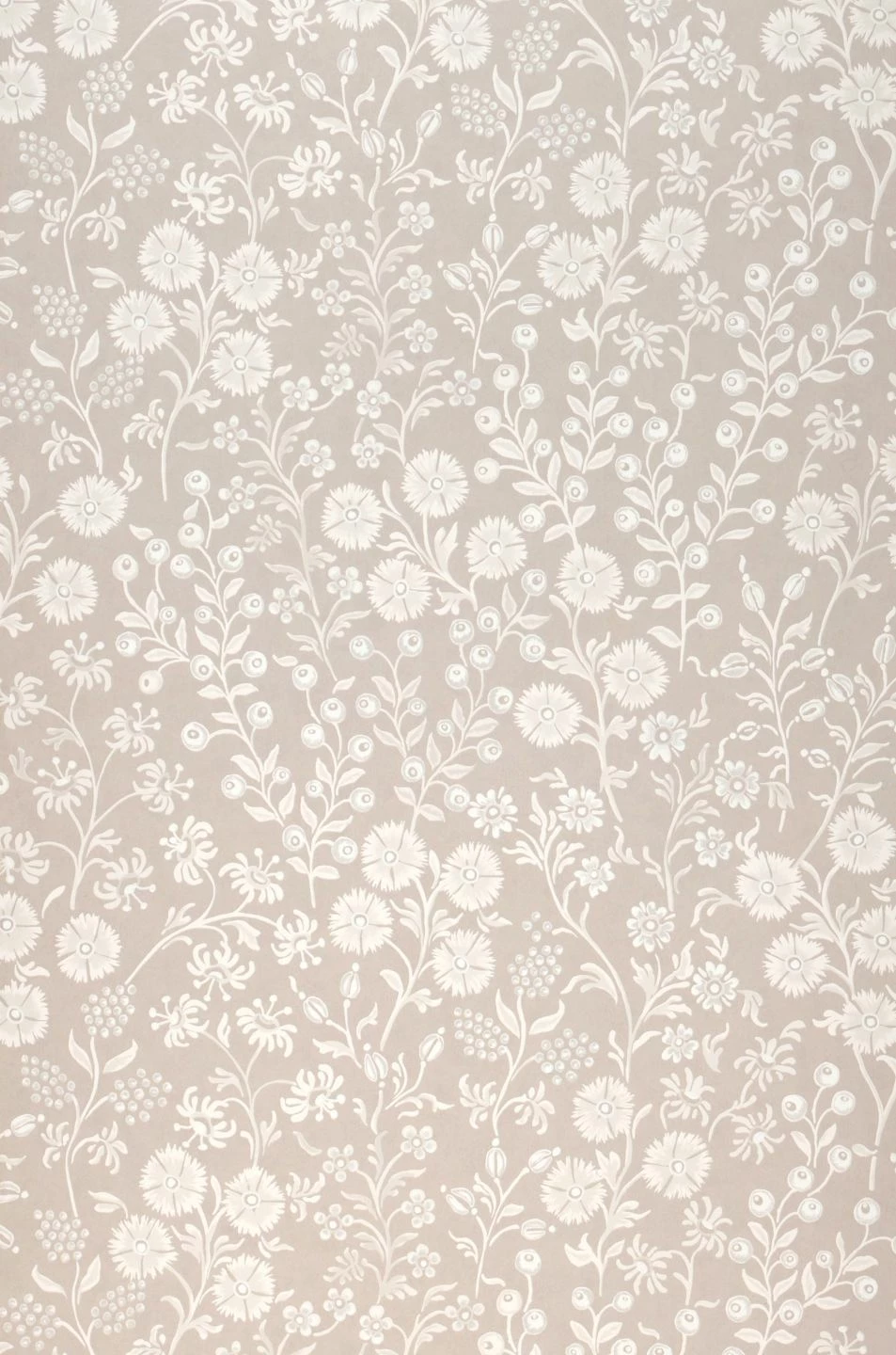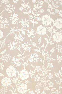 Angesagtes Graubeige liefert den dezenten Hintergrund für die fein ausgearbeiteten cremeweißen Silhouetten von Blumen, Zweigen und Beeren. Ganz behutsam betonen Schattierungen in sehr hellen Grautönen die Rundungen und Blattformen. Skandinavisch, Landhaus oder Shabby Chic – Jessicas apartes, bodenständiges Blumenmuster macht alles mit und setzt den verschiedenen Stilrichtungen ein ästhetisches I-Tüpfelchen auf.