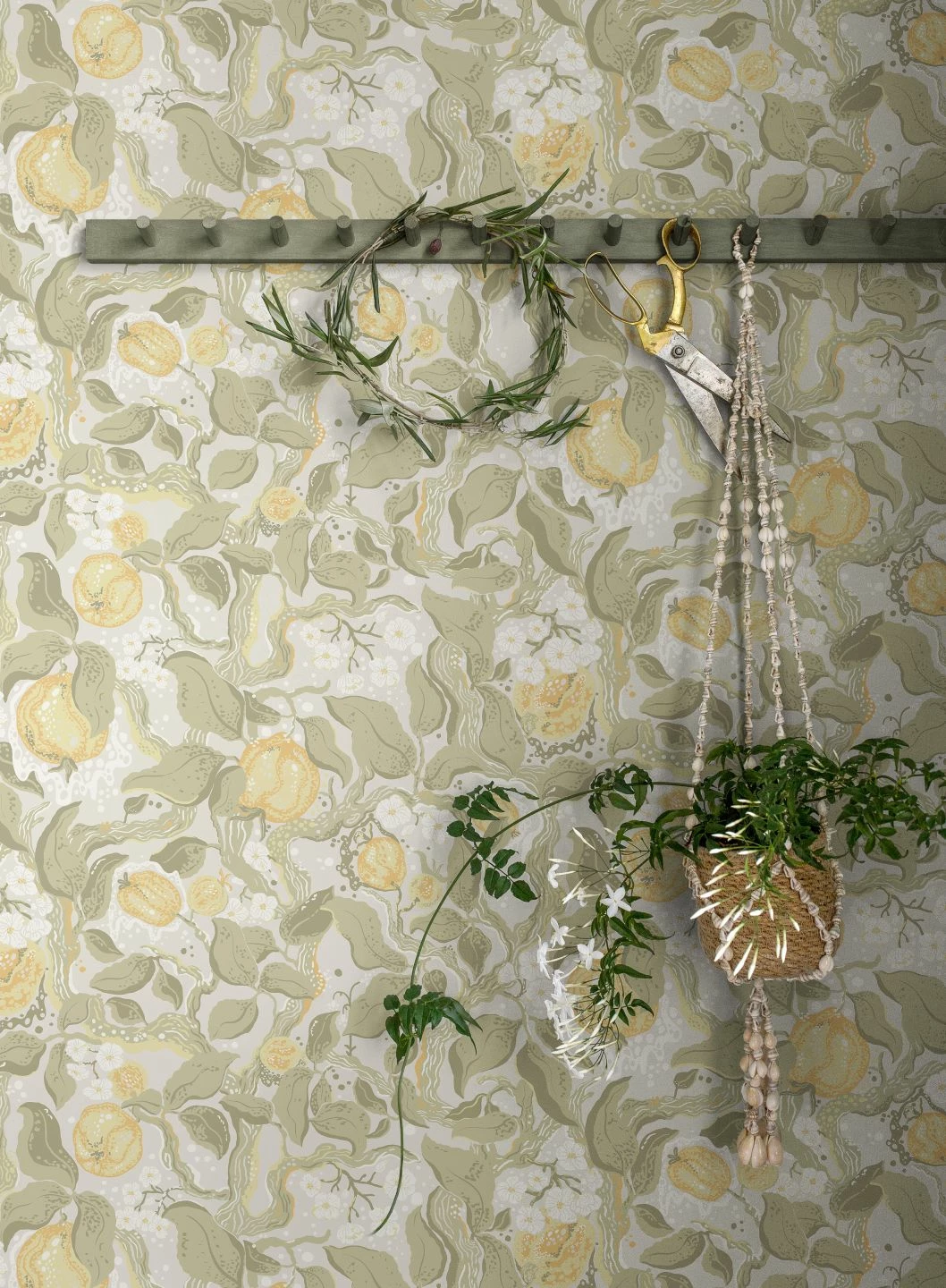 - DesignFrüchte, Granatäpfel, Zweige mit Blättern u. Blüten
