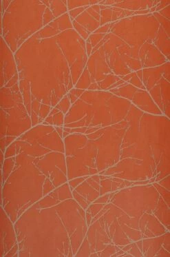 Vor dem leuchtend rotorangefarbenen Grund heben sich helle, zarte Zweige wirkungsvoll ab, die als fühlbares Relief in die Vinyloberfläche von Kansai eingearbeitet sind. Mit ihren feinen Verästelungen und den Knospen, die vom kommenden Frühling erzählen, wirken sie besonders echt. Einer Einrichtung im asiatischen Stil oder im Landhaus-Stil gibt die Vliestapete stimmigen Hintergrund und lebhaften Farbakzent zugleich. Die hoch waschbeständige Oberfläche lässt sich problemlos auch in einem stilvollen Bad nutzen.