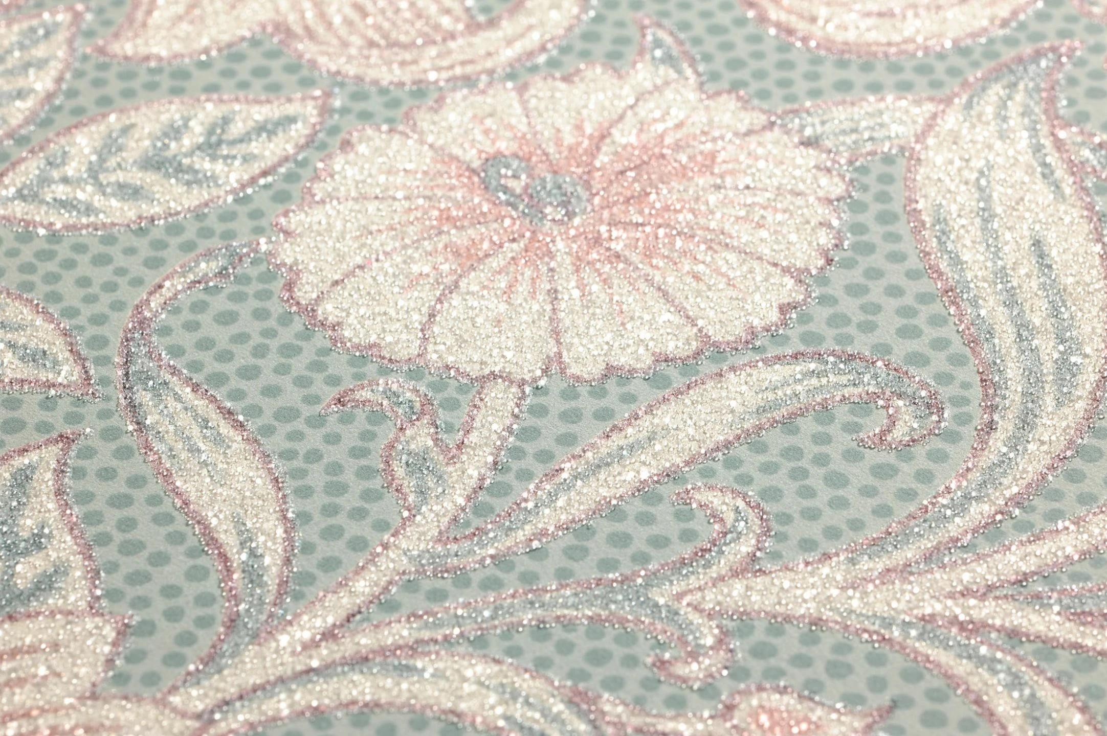 Wie ein feiner textiler Wandbehang, der einst die edlen Gemächer der Adeligen zierte, mutet die hochwertige Glasperlen Tapete mit fühlbarem Relief an. Die zarten Ranken und Blüten, die nebulös erscheinen, werden vom Licht wachgeküsst und funkeln wie kleine Diamanten, was den besonderen Reiz der Design Tapete ausmacht.