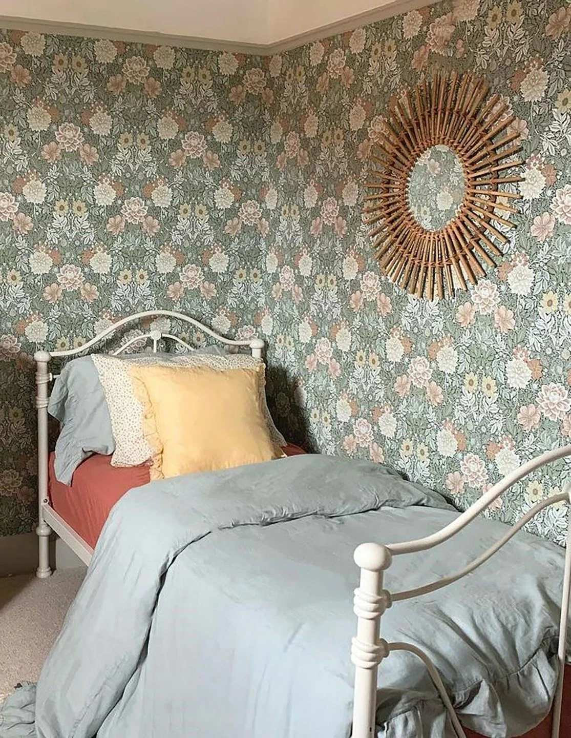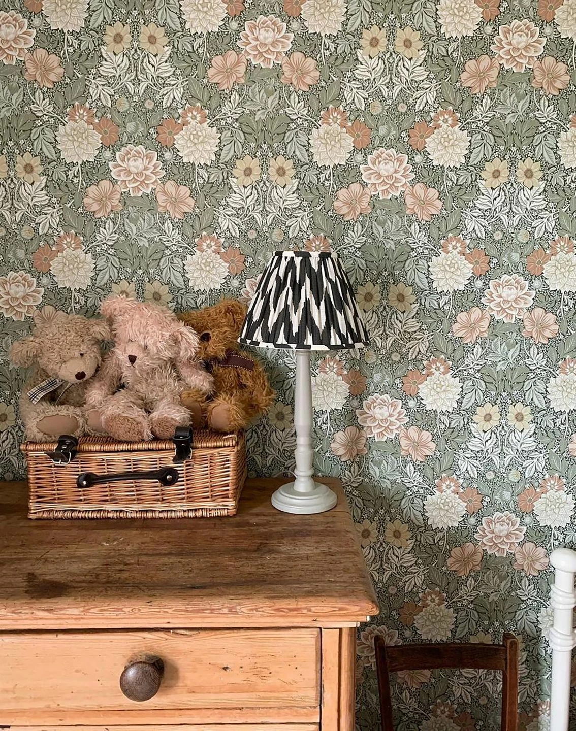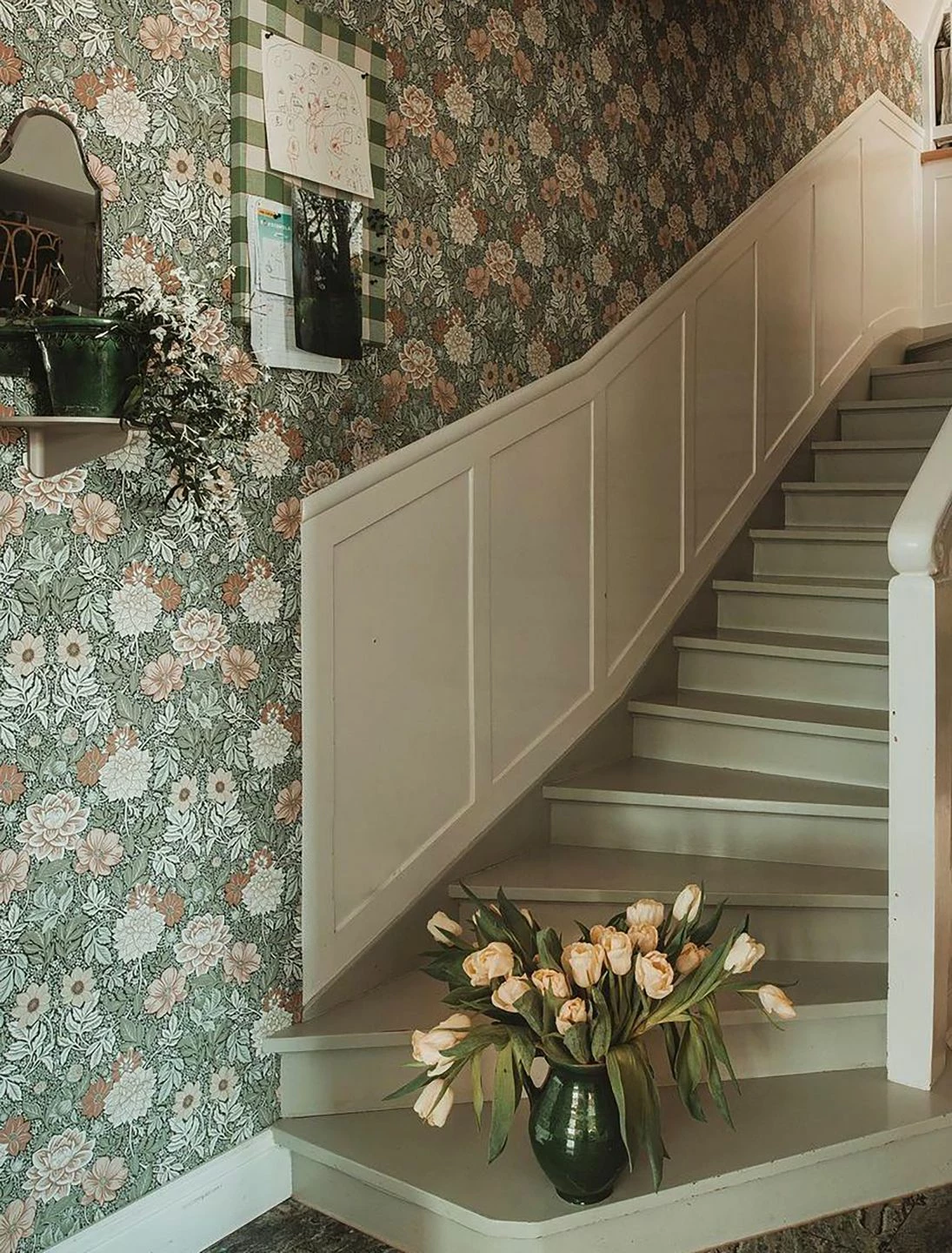 Wie ein großes Blumenbeet voller verschiedener Dahlien wirkt das Muster der Vliestapete „Kerala“. Die großen Blüten in Beige- und Brauntönen harmonieren perfekt mit dem tannengrünen Untergrund, der von kleinen hellen Blümchen zusätzlich belebt wird. Der Leimdruck in Verbindung mit der zugrundeliegenden Symmetrie, in der die Blumen angeordnet sind, bringt einen Hauch von Jugendstil mit und passt ideal zu Möbeln im Retro-Look.