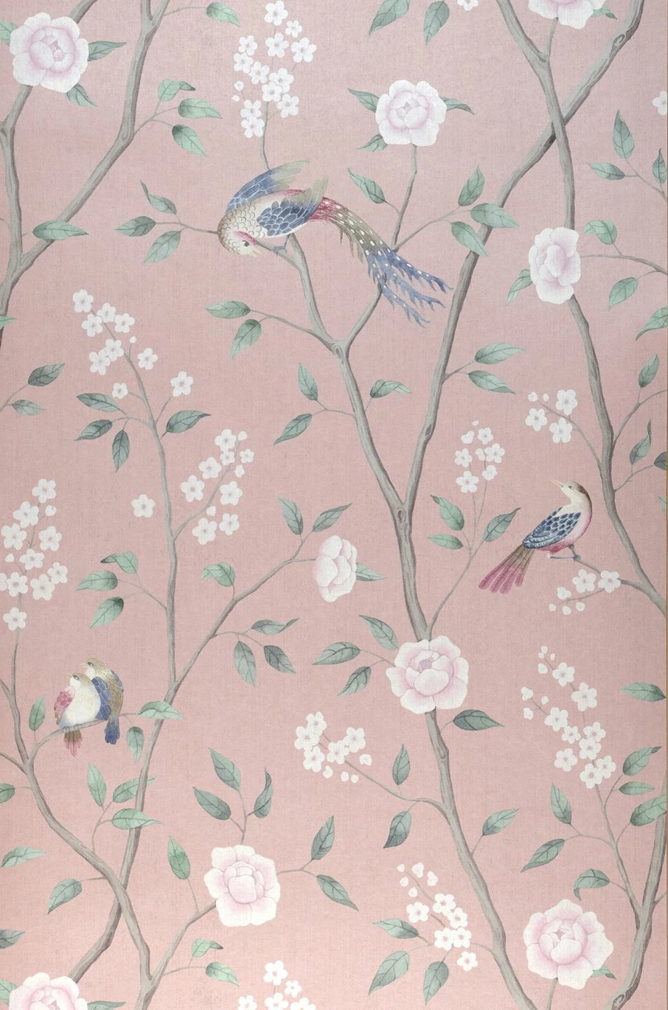Sanfte, helle Farben und eine aquarellartig anmutende Maltechnik wirken zusammen für den unglaublich leichten, beschwingten Eindruck dieser Vliestapete. Auf dem Grund in der Farbe blassen Rosenholzes sitzen auf Blütenzweigen verschiedene Vögel mit zart pastellviolett, weiß und pastellblau gefärbtem Gefieder. Die orientalisch anmutende Tapete bringt frühlingshafte Atmosphäre mit einem Hauch von Exotik in Ihre vier Wände.