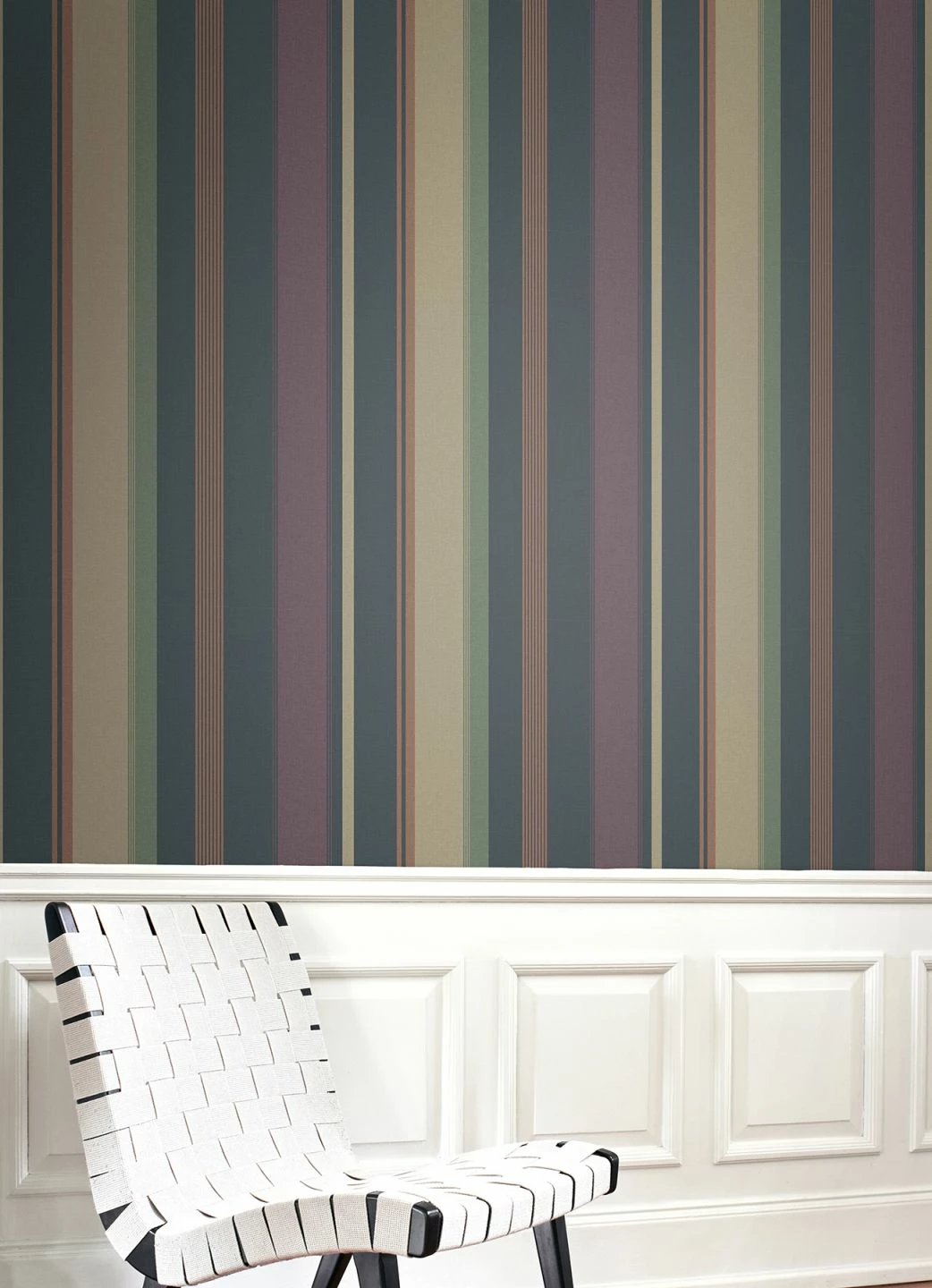 Machen Sie mit den charaktervollen Streifen in den perfekt harmonierenden gedeckten Farbtönen Dunkelblau, Graubeige, Kieferngrün, Lehmbraun und Violett ein echtes Statement! Die matte Oberfläche lässt die Farben leuchten, ohne dass Lichtreflexe ihr harmonisches Zusammenspiel stören. Eine Tapete für Individualisten, die sich mit einer der passenden Wandfarben zu einem stimmigen Gesamtbild zusammenfügt.