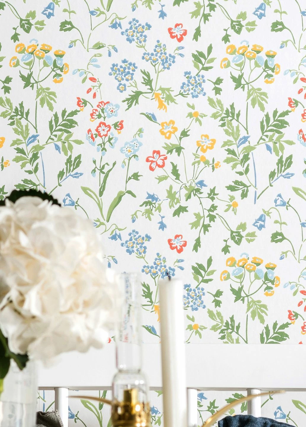 Holla, die Lolla! Da kommt direkt Freude auf, beim Anblick der fröhlichen Tapete, die übersät ist mit bunten Wiesenblumen. Für stimmungsvollen Gleichklang sorgt die akkurate Musteranordnung in harmonischer Symmetrie. Die florale Vliestapete in Leimdruck-Optik verkörpert moderne Romantik.