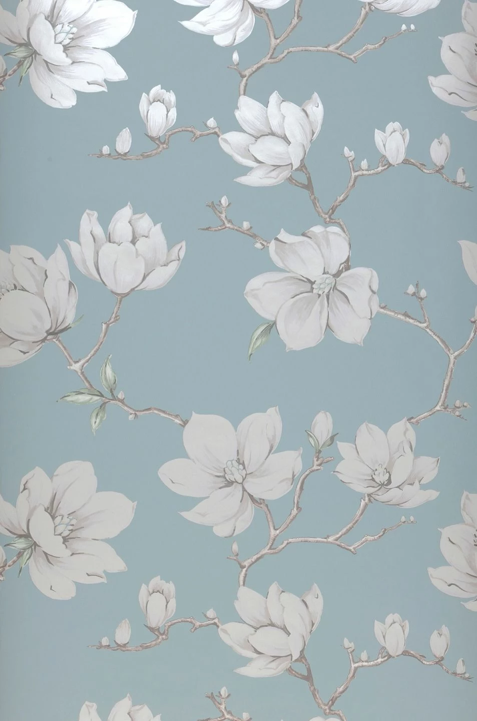 Die Königin der Baumblumen symbolisiert Schönheit, Anmut, Reinheit. Betörend und mit romantischer Noblesse zaubert die florale Blütentapete diese Charakteristika in den Raum. Die Farbkomposition aus mintgrauem Fond mit Blassbraun, Blassgrün und Cremeweiss Schimmer schmeichelt der Seele.