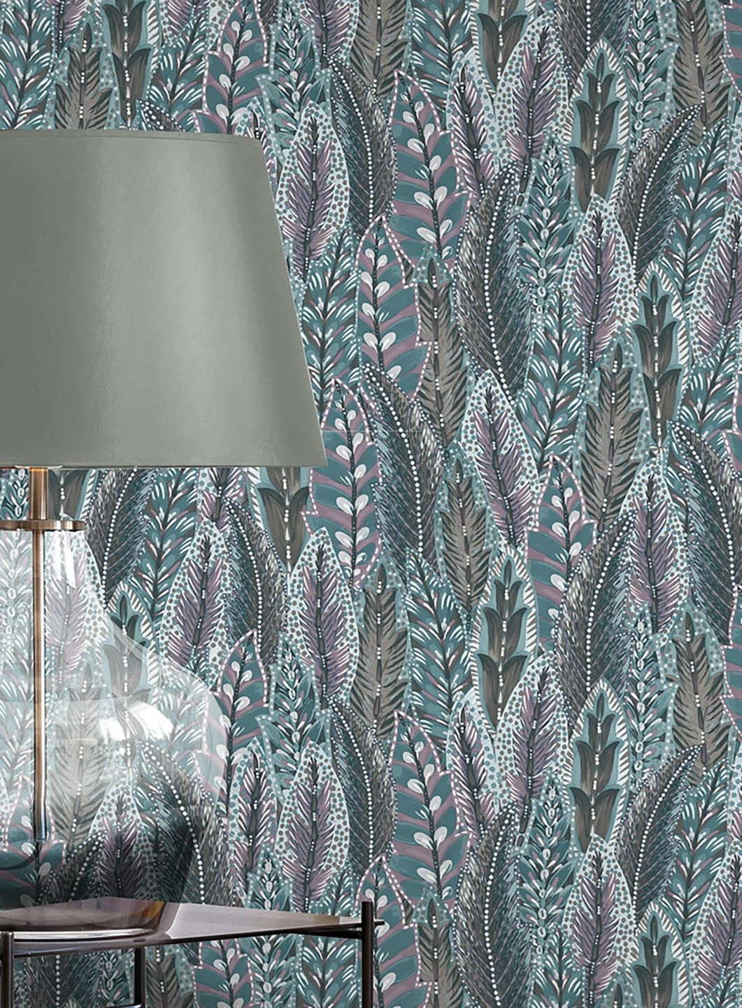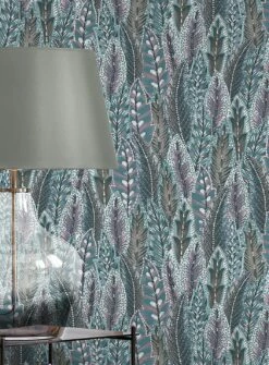 Wunderschön geformt und fein gemustert sind die dicht an dicht wachsenden Blättern auf dieser Vliestapete. Robust und gleichzeitig filigran verästelt wirken die Pflanzen durch die verschiedenen Muster und Schraffuren. Dabei sorgen die perfekt zusammenpassenden Farben, unter denen ein sanftes Pastellviolett und verschieden helle Türkistöne dominieren, für eine kühle, ruhige Ausstrahlung. Schimmerndes Weiß steuert zarte Lichtreflexe bei.