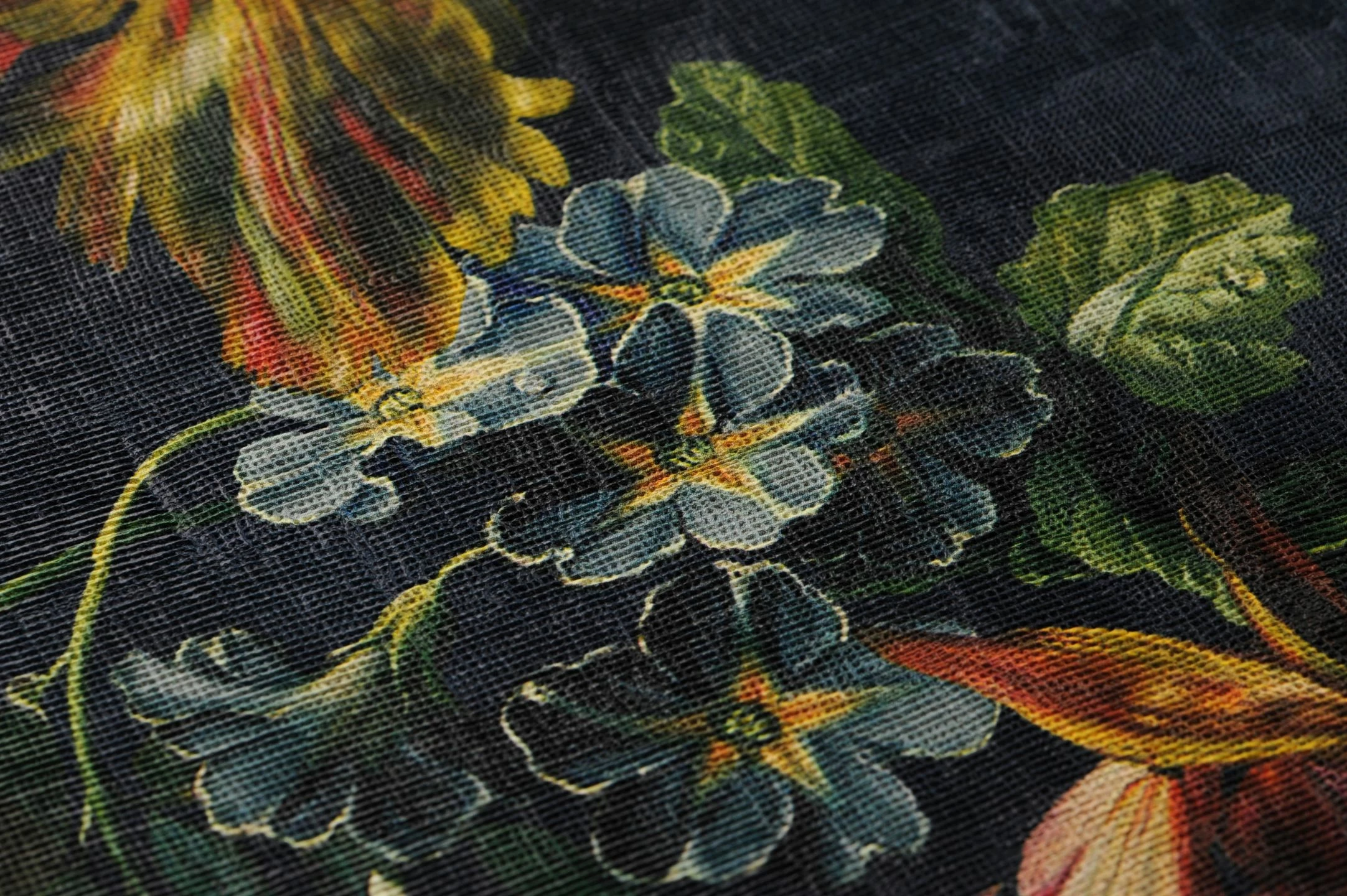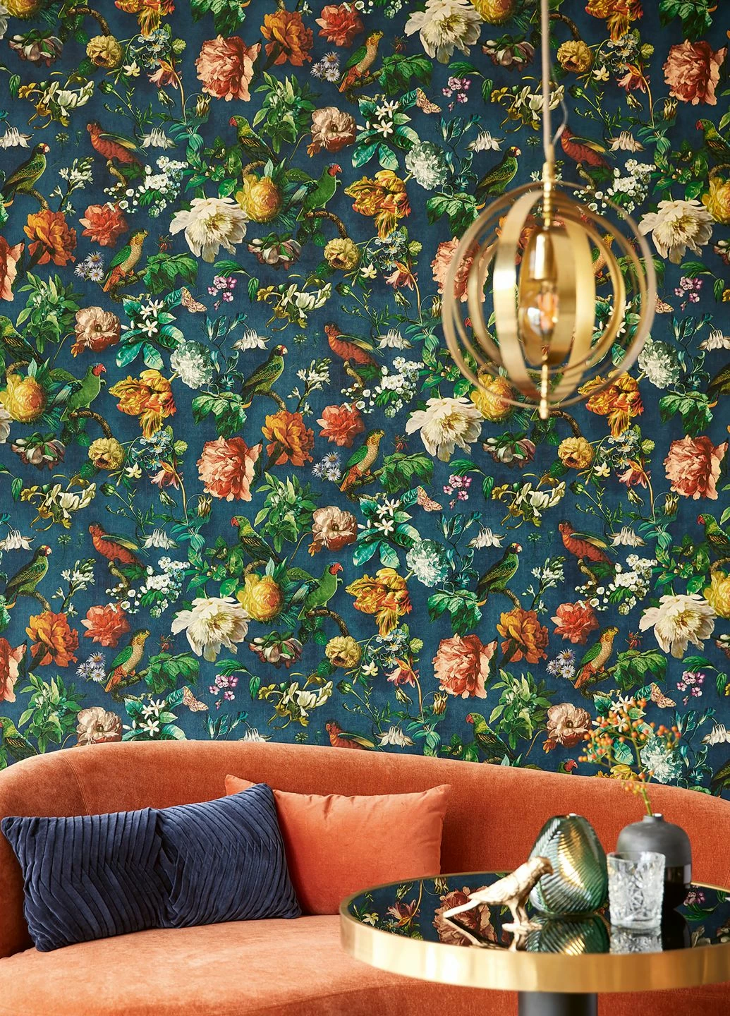 Wie ein kostbares Gemälde wertet die Vliestapete „Margarete“ Ihre Wände auf. Die üppig blühenden Blumen, die naturgetreu abgebildeten Blätter und die farbenprächtigen Papageien und Schmetterlinge wirken wie das Werk eines alten Meisters. Die textilähnliche Struktur der Vinyloberfläche unterstützt den Eindruck einer mit Ölfarbe bemalten Leinwand. Das Vinyl macht die Tapete hoch waschbeständig, so dass sie auch Ihr Badezimmer verschönern kann.