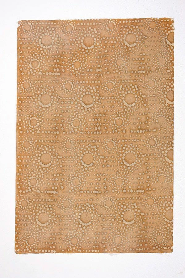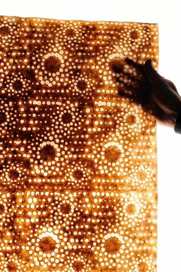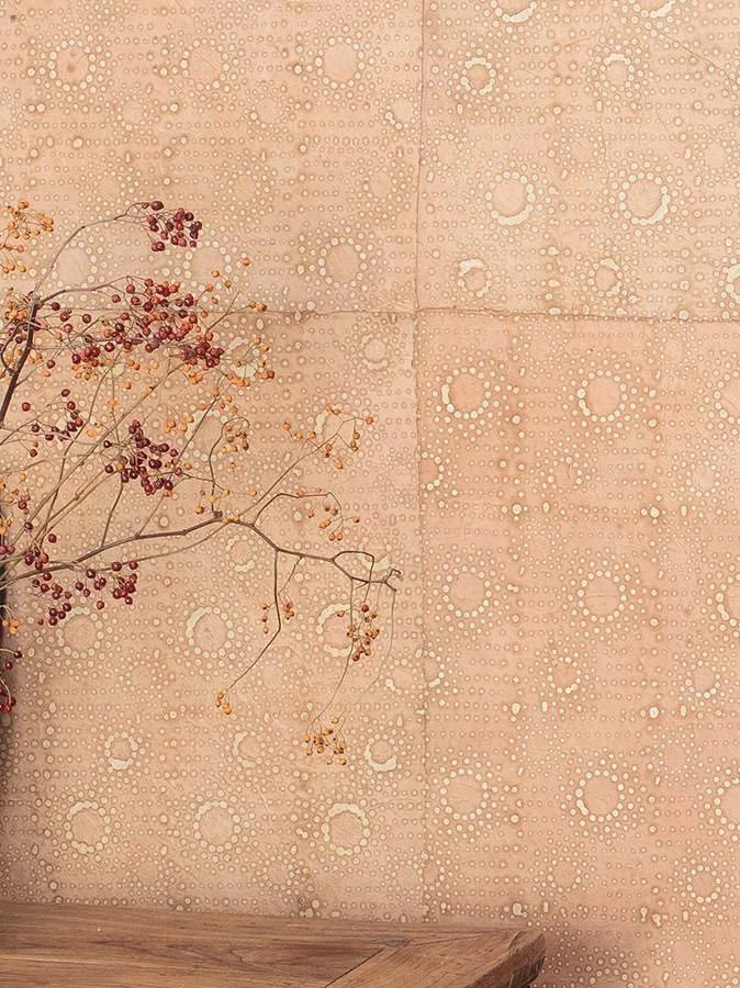 Feinstes leicht transparentes Blattwerk in Batikart von Hand bedruckt – Mit dem Tapetenset von Le Monde Sauvage erschaffen Sie Wandkunst nach Ihrer Fasson. Geheimnisvolle Sonnenpunkte von Ethnomustern inspiriert und in warme Braun- und Beigetönen getaucht, spielen mit den Augen und lassen die Sinne schweifen. Ideal für Shabby Chic-Looks und Ethno-Styles.