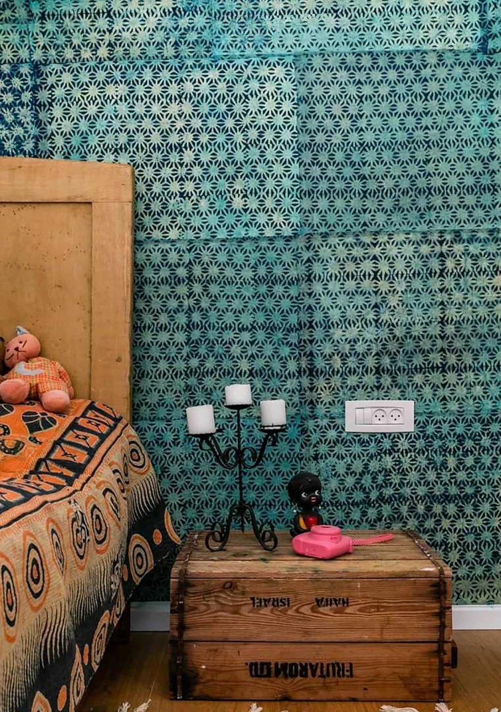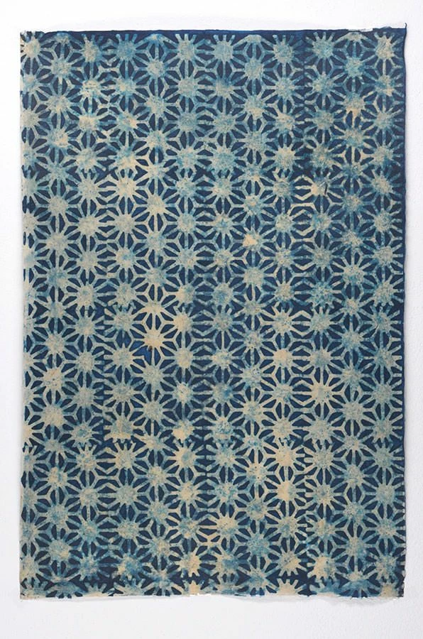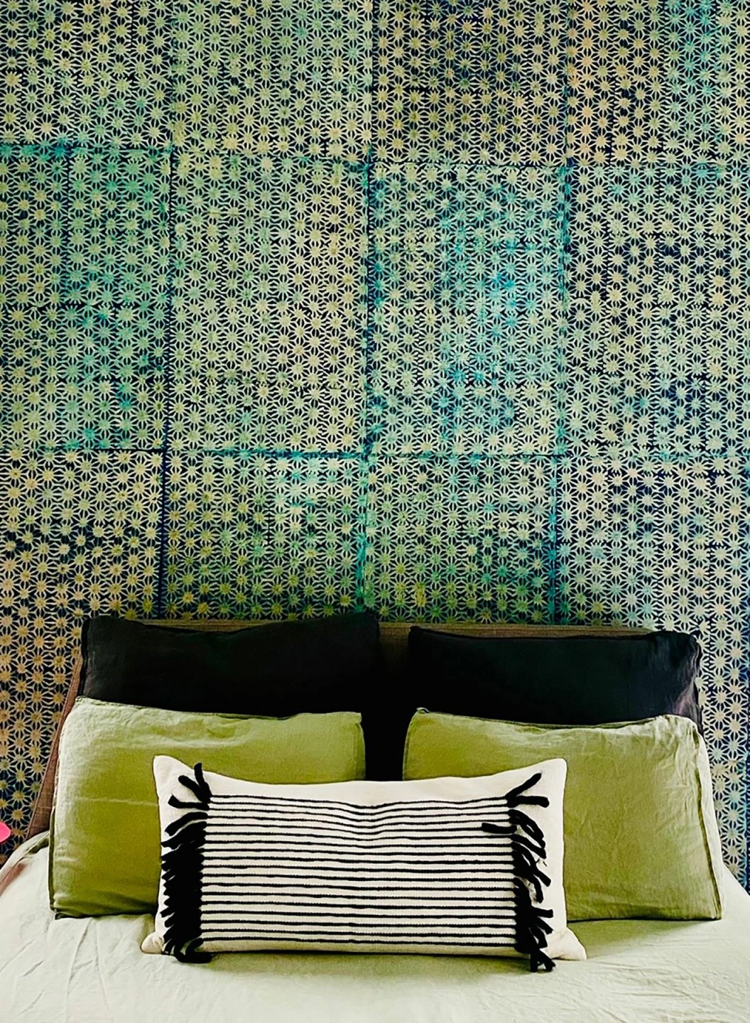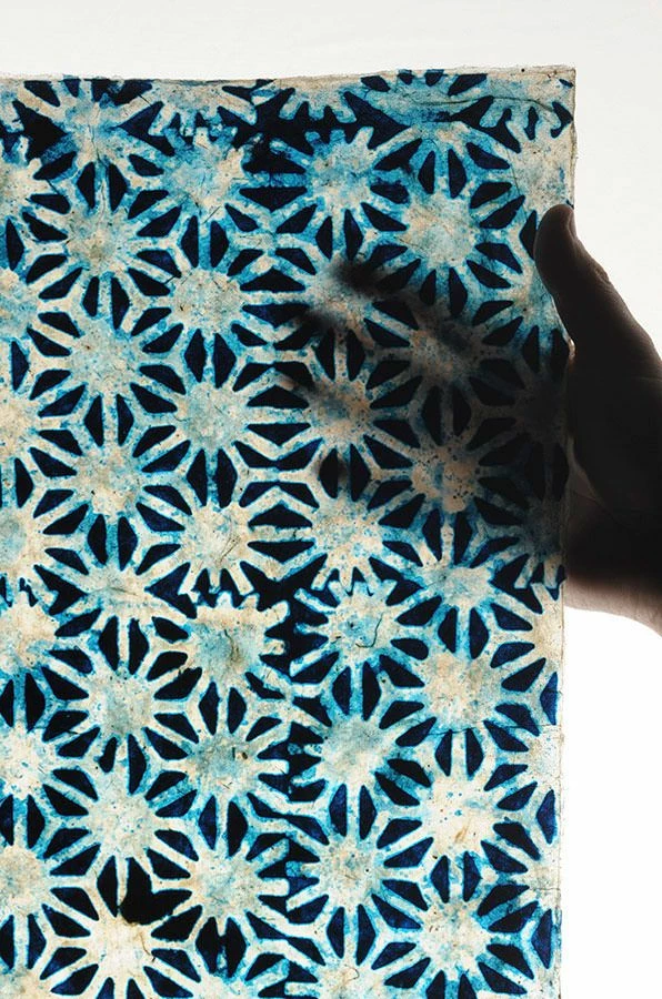 Die hohe Kunst der Batikfärberei kommt auf dieser Unikat Tapete des französischen Designerlabels Le Monde Sauvage wunderschön zur Geltung. Stilisierte Blüten bilden an der Wand ein schwungvolles Mexikomuster, das sich für Ethno-Styles mit blauer Note hervorragend anbietet. Jedes Blatt ein Unikat und von Hand bedruckt. Die Anordnung ist Ihrer kreativen Ader überlassen.