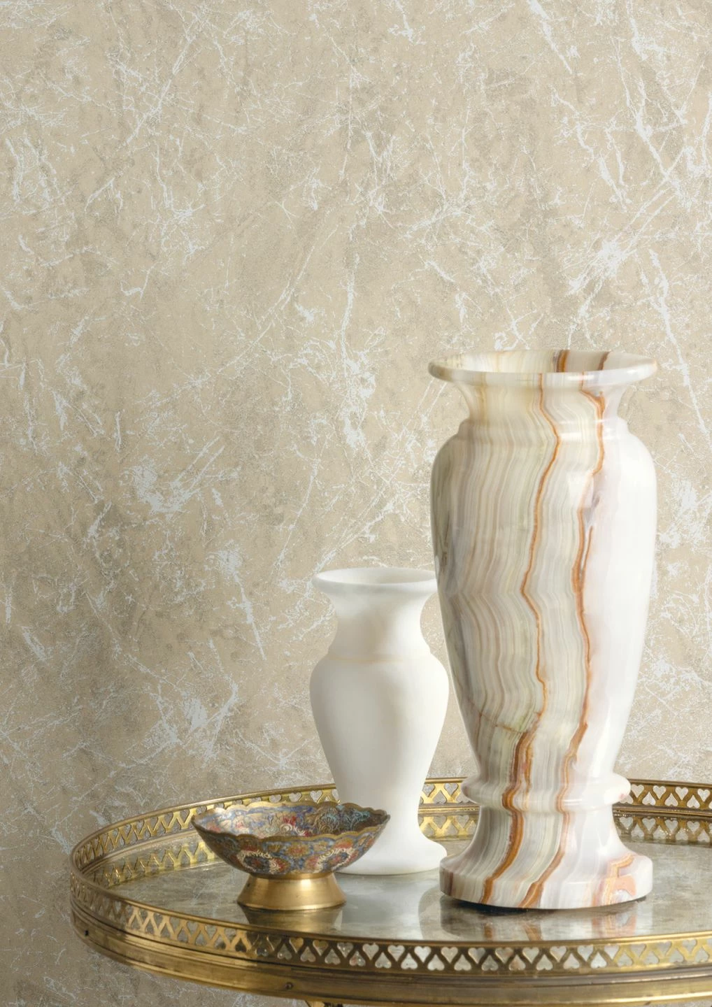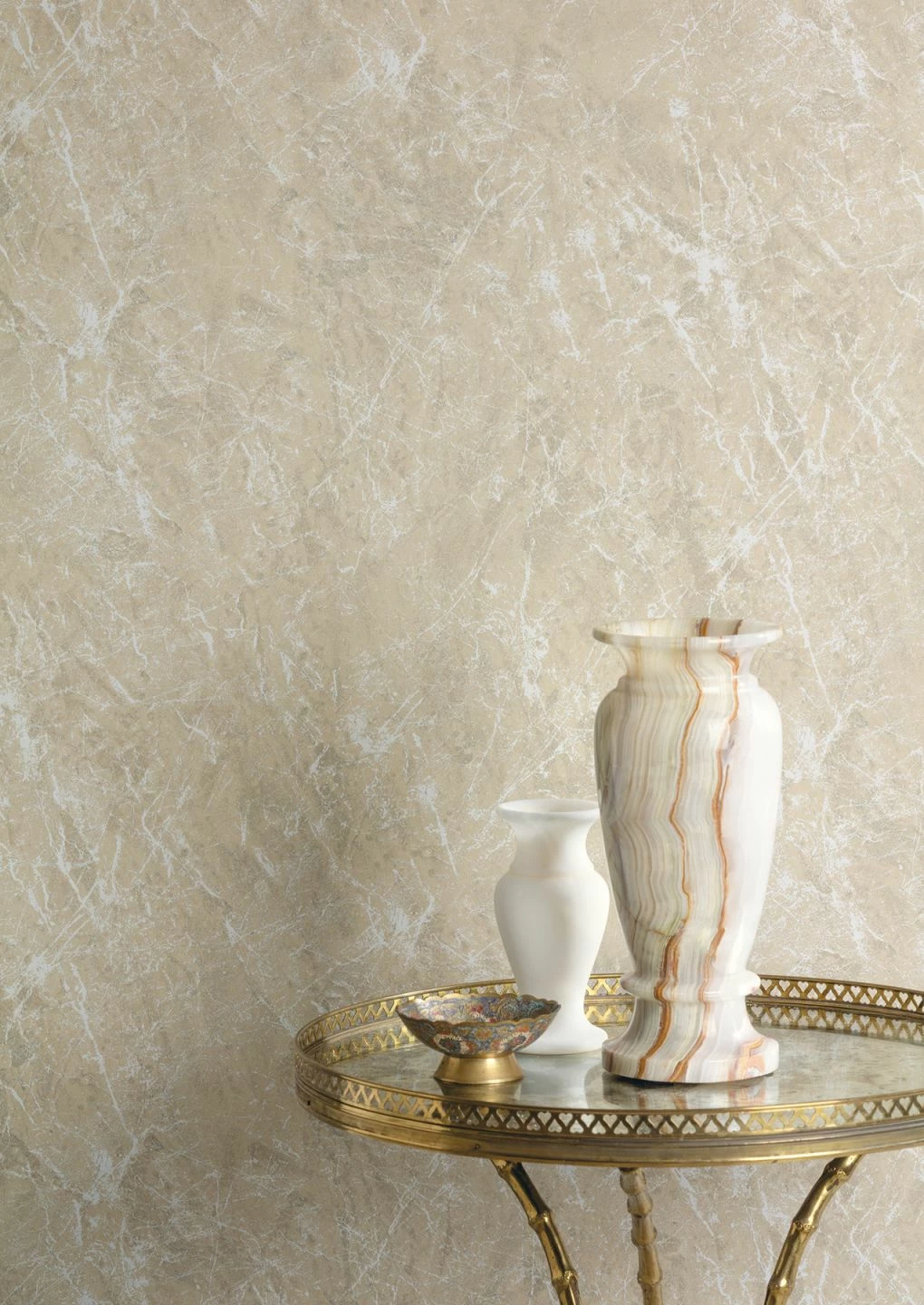 Besonders kostbar wirken Ihre Wände, wenn Sie sie mit dieser Vliestapete verschönern: Sie imitiert das Aussehen echten Marmors und schafft ein Ambiente von klassischer Eleganz. Die Marmorimitation changiert zwischen Weiß, Grau- und Beigetönen und sorgt für Helligkeit und Exklusivität. Die vornehme Tapete verträgt außergewöhnliche, zeitlose Klassiker an ihrer Seite. Elemente aus Messing vervollständigen das Bild von antiker Pracht.