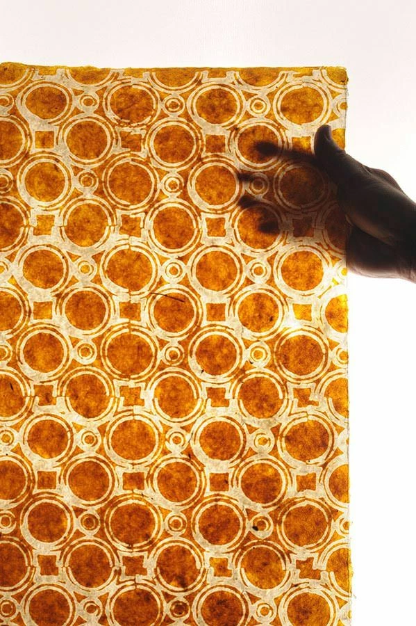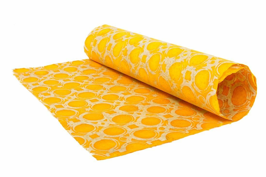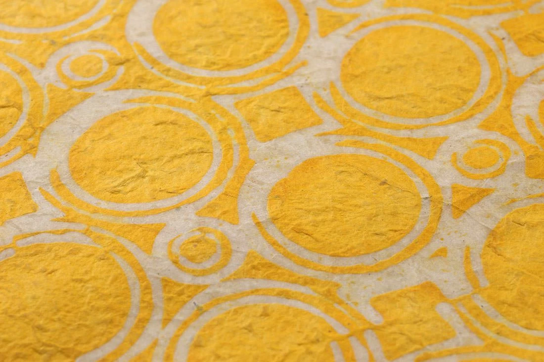 Leuchtendes Maisgelb dominiert als Musterfarbe die Sonnengöttin unter den einzigartigen Tapetenkreationen des Designerlabels Le Monde Sauvage. Durch den beigen Untergrund erhält diese Batik Tapete einen goldenen Akzent, der für das Plus an romantischer Wärme sorgt. Die besondere Struktur mit leichter Transparenz ergibt sich aus dem hochwertigen Papier in Verbindung mit Handdruck im Batikstil. Gestalten Sie Ihren Palast der Sinnlichkeit und Geborgenheit mit einem Hauch von Orient und indischen Märchenerzählungen. Das besondere Bogenformat der Tapete ermöglicht Ihnen variable Installationstechniken und somit spezielle Musterwirkeffekte.