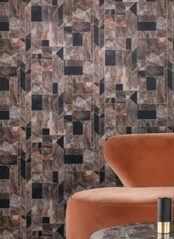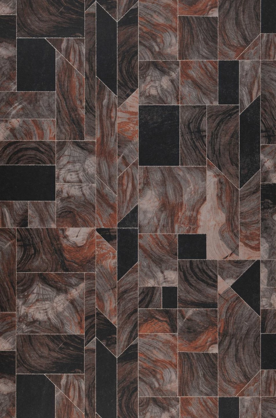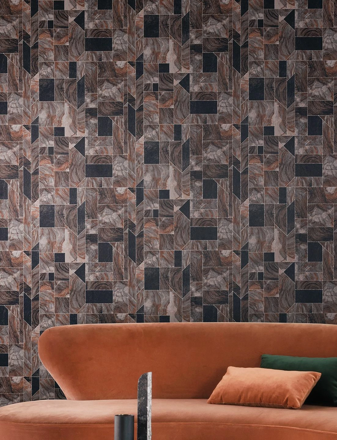 Orvallo hebt die Steinoptik-Tapete auf ein ganz neues Niveau. Wie ein komplexes Puzzle aus Naturstein-Kacheln mit leicht silbern schimmernden Fugen ist das Design aus ganz unterschiedlichen geometrischen Formen zusammengesetzt. Die Marmorierung in angenehmen, perfekt aufeinander abgestimmten Nuancen von Braun und Grau unterstreichen den Charakter der Steinimitation, die trotzdem eine sympathische Wärme ausstrahlt.