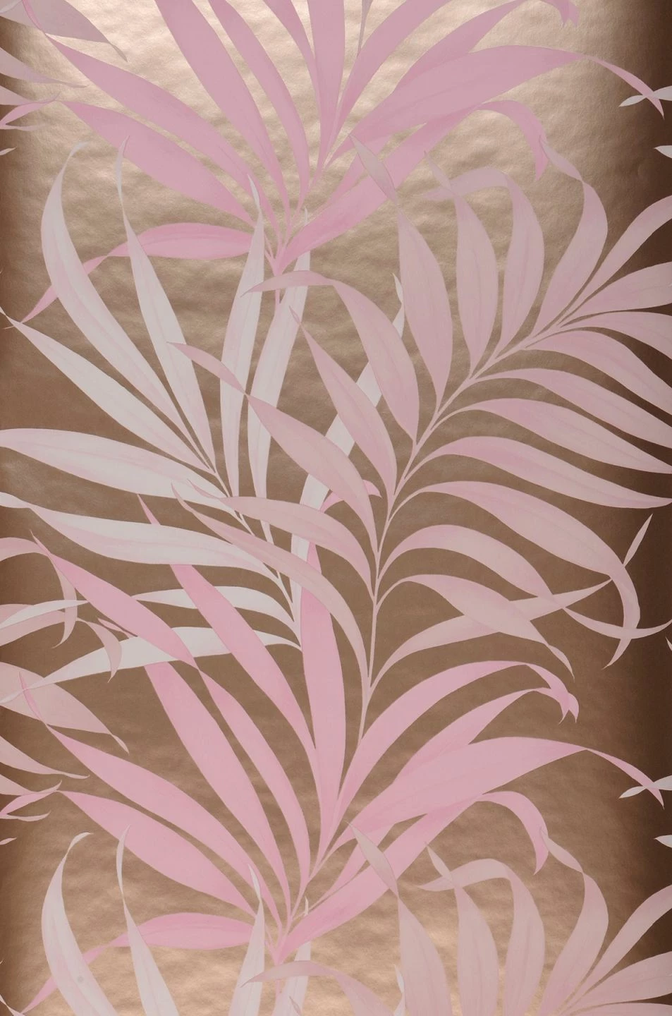 Facettenreiche Rosatöne in unterschiedlichen Helligkeitsstufen werden von schimmerndem Gold in eine dynamische Bewegung versetzt. Es ist, als scheinen die feingliedrigen Blätter zu tanzen und zwar aus der Reihe vor purer Begeisterung. Lassen Sie sich mitreißen vom Charme dieser extravaganten Tapete, die zum Auffallen gemacht ist.