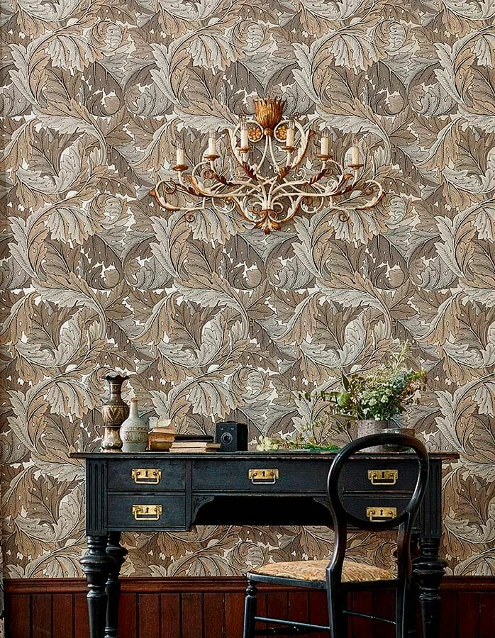 Floraler Barock, der von schlichten und natürlichen Blattornamenten lebt und dennoch eine bewegte Opulenz ausstrahlt – Gegensätze ziehen sich bekanntlich an und Design Tapete Patagonia ist dafür ein musterhaftes Beispiel. Helle bis mittlere Grau- und Brauntöne, hinter denen Perlbeige schimmernd hervorblitzt, unterstreichen die Natürlichkeit.