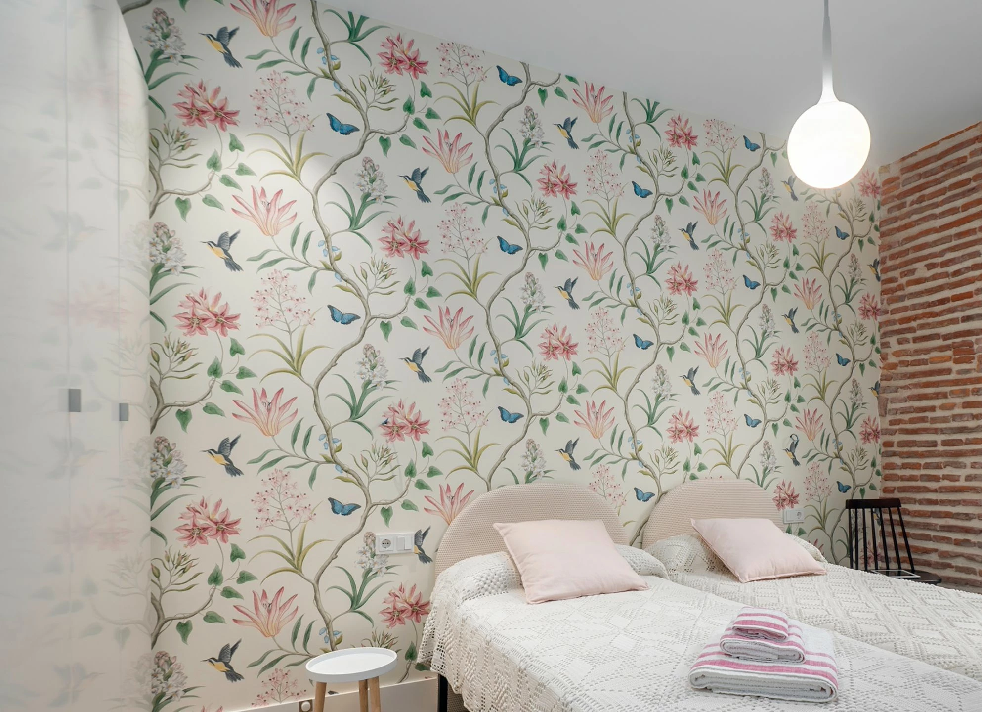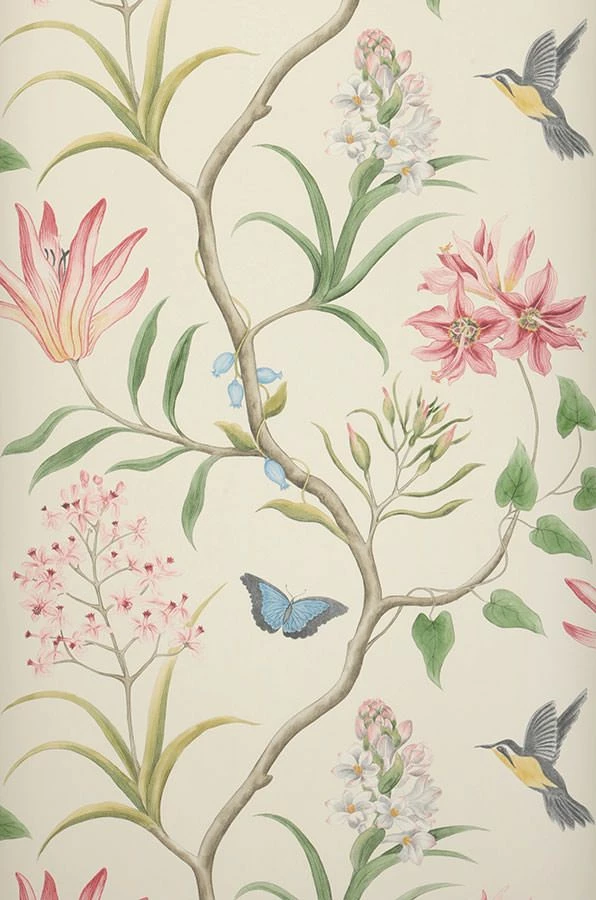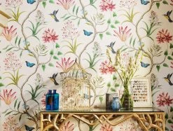 Filigrane Blüten und Blätter, zarte Farben auf cremeweißem Untergrund, zwischen den blühenden Zweigen schwebende naturgetreu gezeichnete Vögel und Schmetterlinge – die Vliestapete „Pazia“ ist eine wahre Augenweide. Als stilvolle Ergänzung zum Landhausstil oder kombiniert mit antiken Möbeln – sie lässt sich vielseitig einsetzen und schmückt mit ihrer Leichtigkeit ein einladendes Wohnzimmer ebenso wirkungsvoll wie ein helles, ruhiges Schlafzimmer.