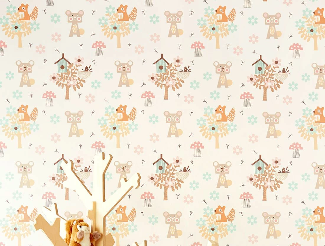 Natur ist nicht nur draußen. Mit unserer Kindertapete Pepko holen Sie auf spielerische Weise Bäume, Blumen oder Pilze ins Kinderzimmer. Gefällt zum Beispiel die Variante in Braun, Pastellgrün und Hellrosa am besten?