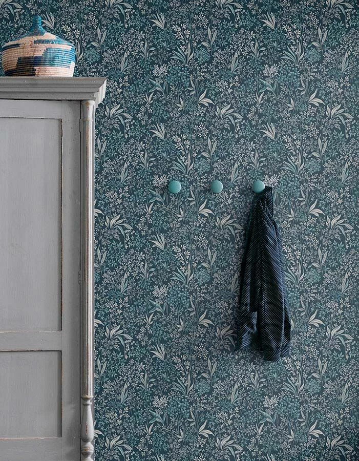 Dass florale Musterelemente an der Wand eindrucksvolle Blüten treiben, wird mit Design Tapete Pilar herrlich deutlich. Grau und Blau geben sich die Farbenehre und zwar in interessantem Wechselspiel, als Muster- und Grundfarbe im Feintuning abgestimmt. In Kombination mit einer hellen oder weißen Einrichtung entsteht ein wirkungsstarkes Kontrastprogramm, das Romantik, Shabby Chic, Country Style gleichermaßen bedient.
