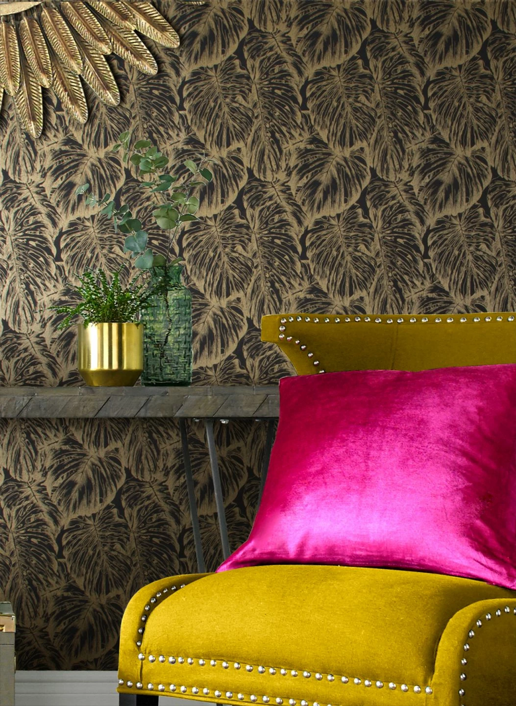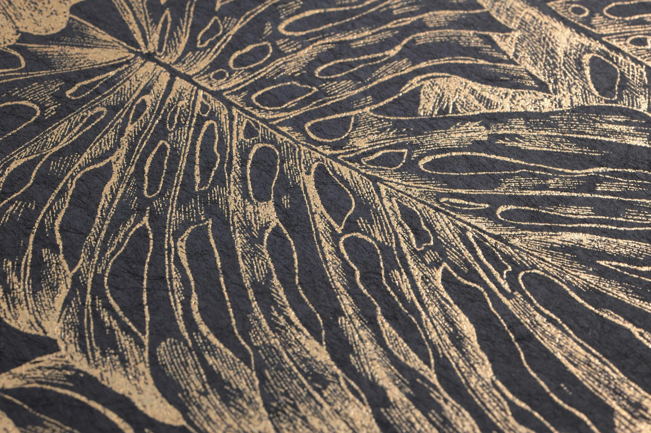 Raisa erinnert an den Namen einer indischen Göttin und so wird die prächtige Luxustapete ihrem Namen auch wunderbar gerecht. Das opulente Blattwerk, dessen Silhouette bis in die feinsten Adern von Gold durchzogen ist, bedient den eleganten Geschmack mit bewusstem Hang zur Dekadenz. Der anthrazitfarbene Grund stärkt die glamouröse Fülle.