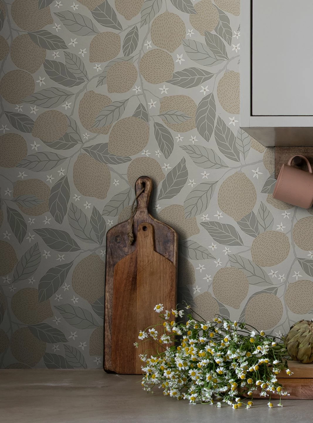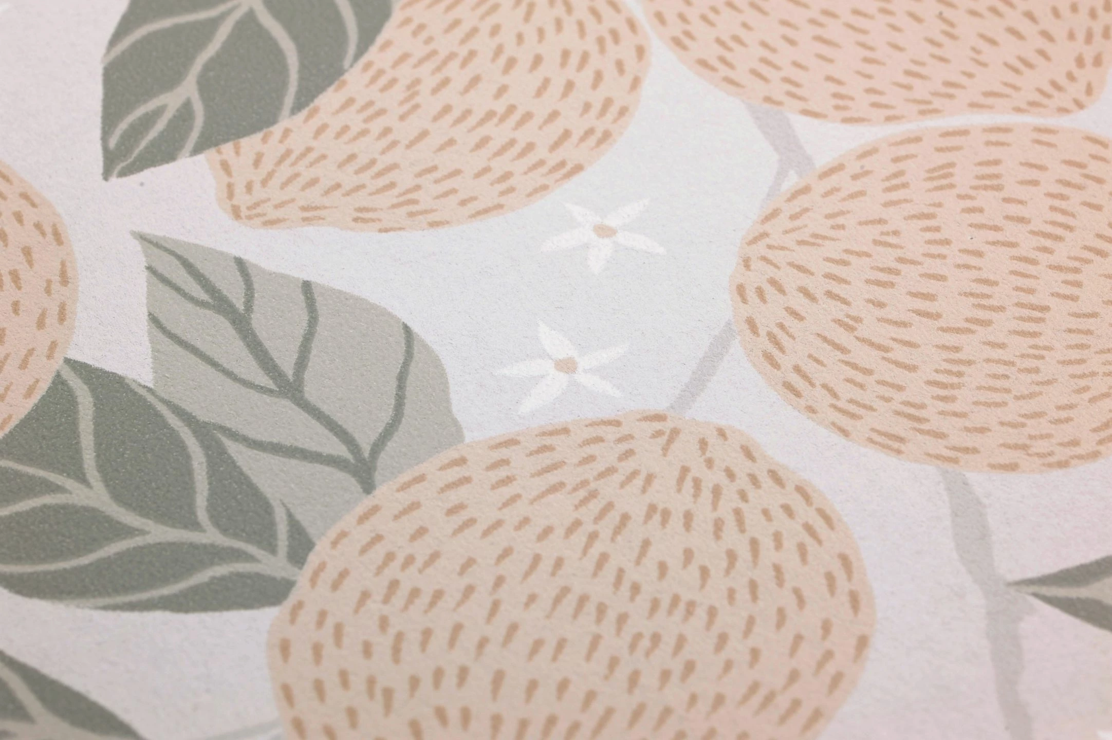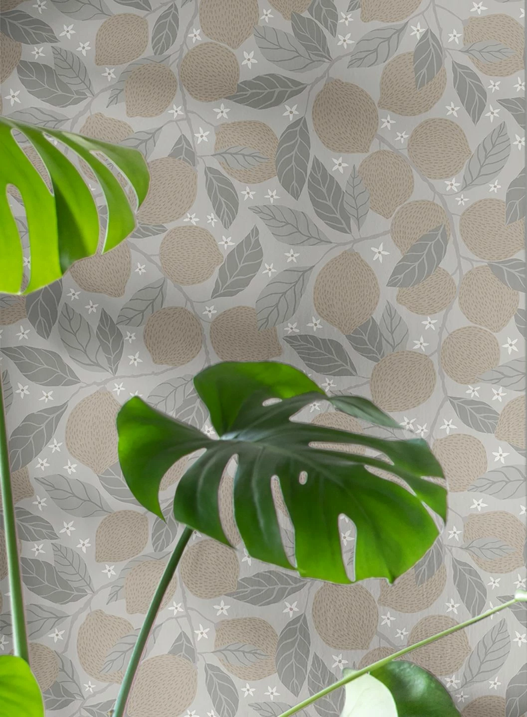 Reife Zitrusfrüchte mit liebevoll gezeichneten Details, weiße sternförmige Blüten und kräftige Blätter – das alles ist auf dieser geschmackvollen Vliestapete in dezenten Braun- und Grautönen sowie Weiß gehalten und umgibt Ihren Raum mit einer unaufdringlichen, aber bewegten Kulisse. Die zarten Farbtöne lassen sich wunderbar kombinieren. Ob Küche oder Wohnzimmer – die subtropische Wohlfühl-Atmosphäre ist garantiert.